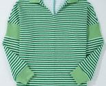 - Green Stripe Turn-Down V Neck Patchwork Loose Top
