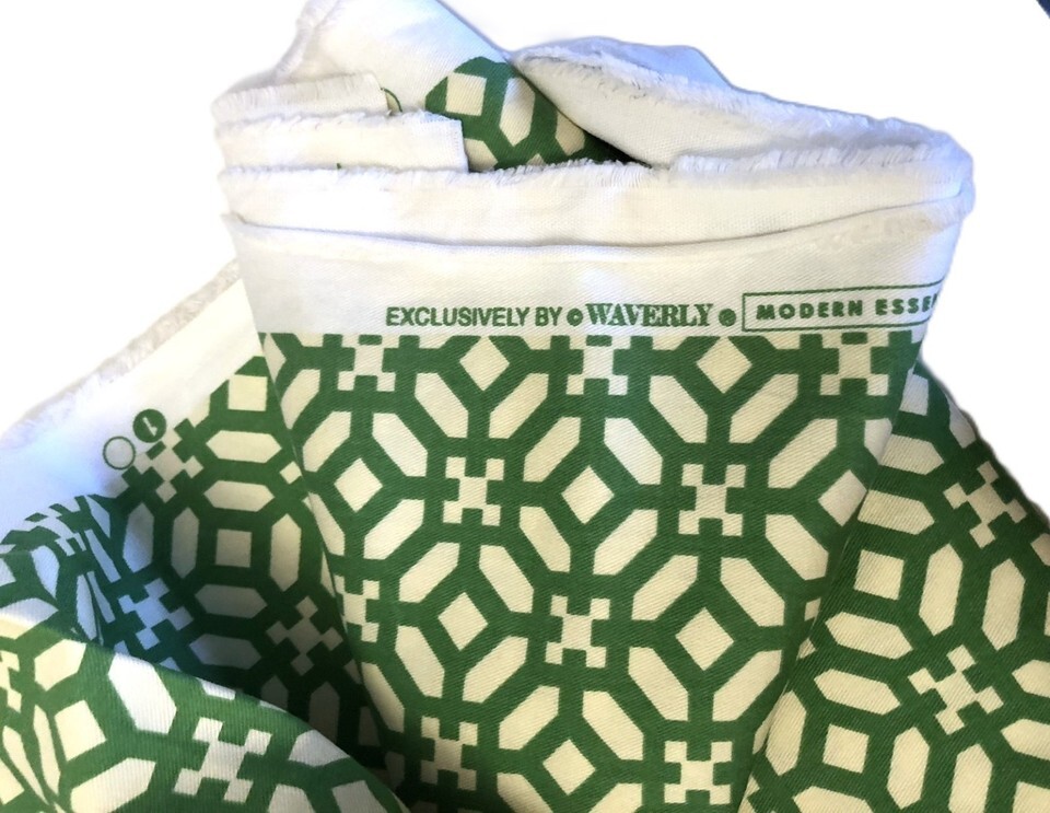 - Green & White Geometric Fabric for Sewing, Crafts, Quilting, Material-2 Yards
