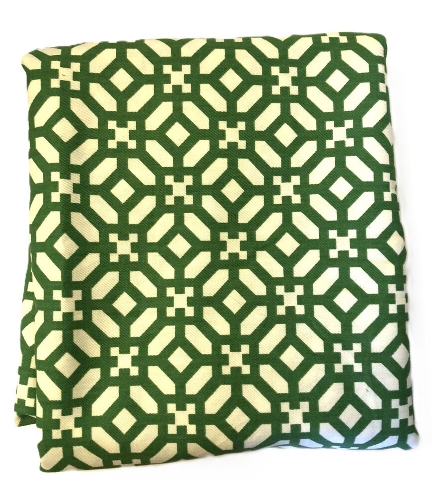 2 Yards of Green White Geometric unwashed Fabric, 54"x72". I am not sure on the fabric type, maybe a polyester cotton blend. I do have more items listed and Calculated shipping is applied to cart when you purchase multiple items.