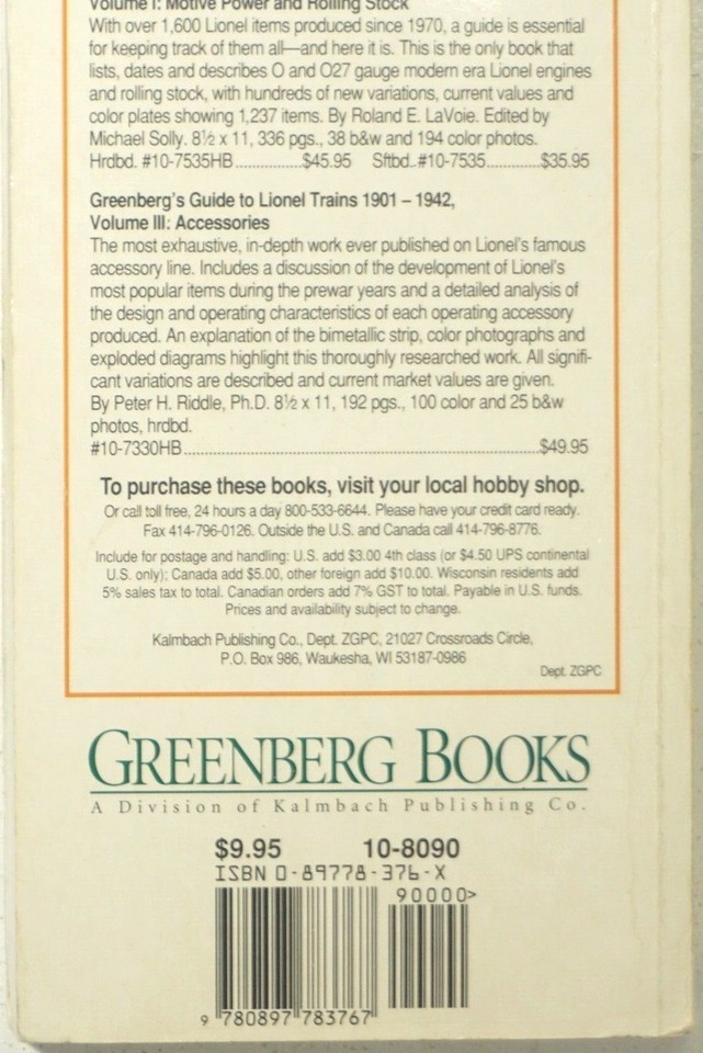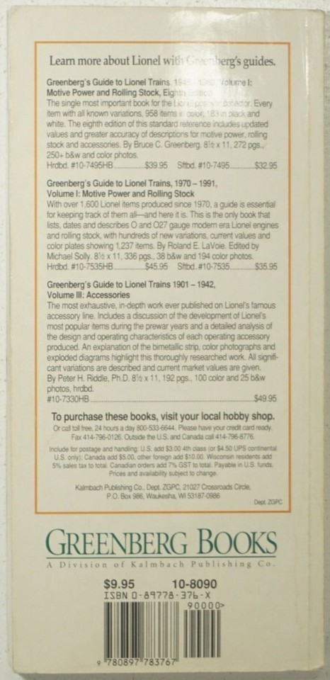 - Greenberg's Guide To Lionel Trains Pocket Price Guide Booklet 1901-1994 Edition
