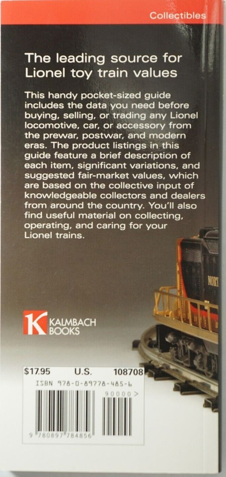 Greenberg's Guide To Lionel Trains Pocket Price Guide Booklet 1901-2008 Edition Used Good Condition ISBN: 9780897784856 Other Codes: 97808977848569000 108708 Sold as is (See pics for full details) Be sure to check out my other listings! I have more model train related printed physical media covering many different scales manufactures to list in the future, so check back every week! I offer combined shipping with everything I sell, so If you win more than one auction from my store, they will all go in the same box. Everything I sell comes from a smoke free, artificial sent free home.
