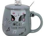 - Grey Calico Cat Love Music Coffee Mug Cup With Spoon And Kitten Knob Lid 15oz