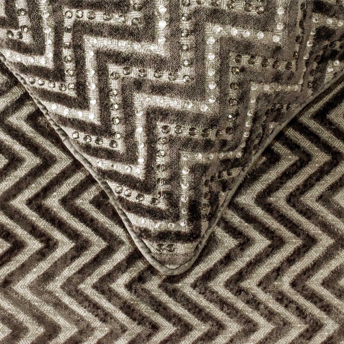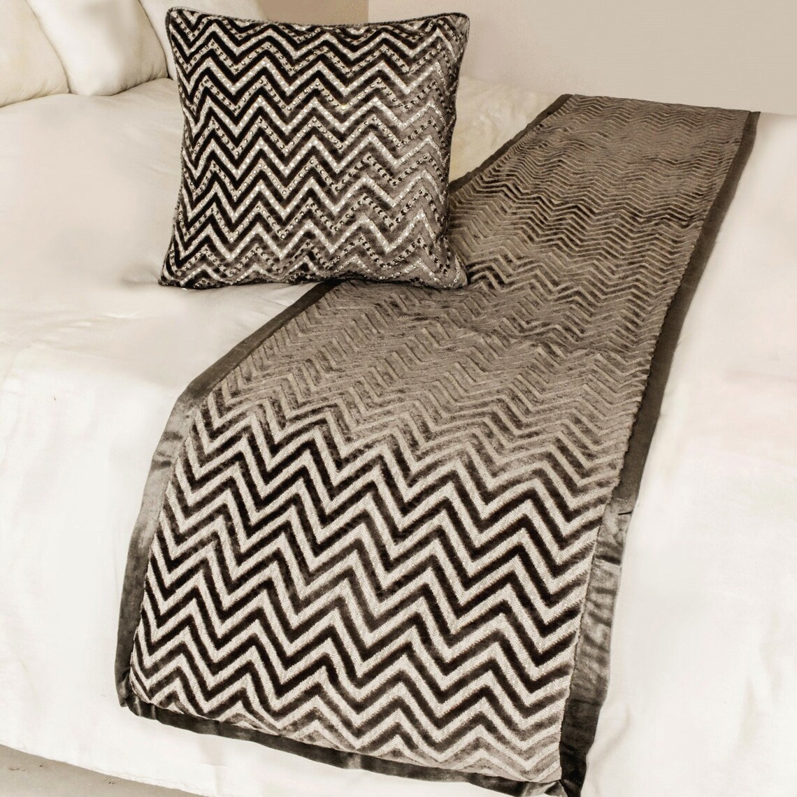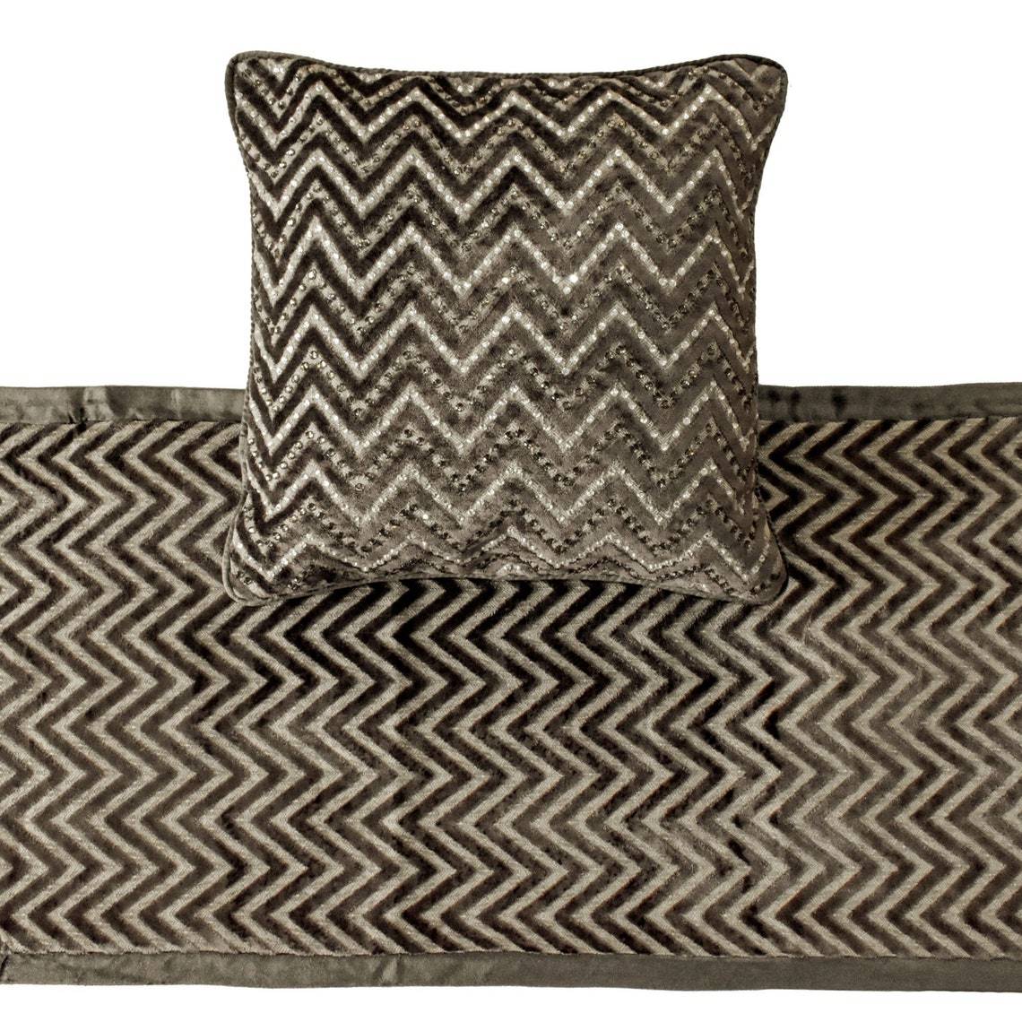 - Grey Crystal Chevy - Velvet Grey Decorative Bed Runner and Pillow Cover