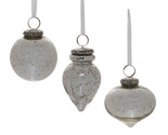 Elevate your holiday decor with this exquisite Set of Silver Mercury Glass Ornaments. Featuring a sophisticated blend of deep gray and silver tones, these ornaments showcase timeless shapes that bring elegance to your Christmas tree. Crafted from high-quality mercury glass with a rustic brass hanger, these ornaments offer a vintage-inspired charm that lasts for seasons to come. Whether adorning your own tree or given as a thoughtful holiday gift, this set adds a touch of classic beauty and festive spirit to any home. Sold in a collection of six pieces with three assorted designs to create a balanced display on your Christmas tree.