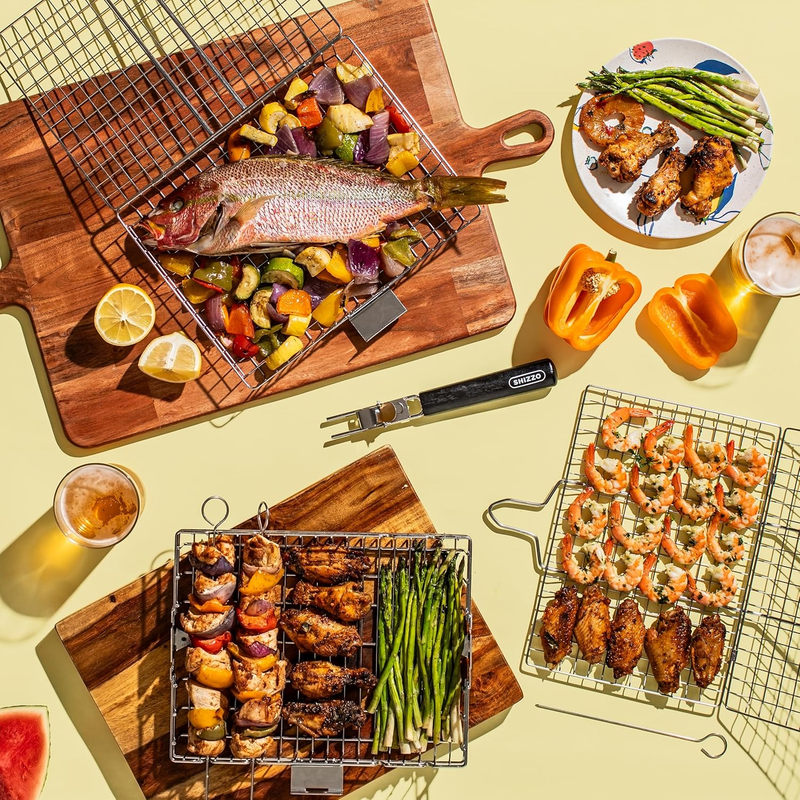 Safer and Easier Grilling - The SHIZZO grill basket features a long handle and a secure locking mechanism that allows you to flip your BBQ safely and easily with no food waste. A safer, easier, and more satisfying grilling experience.