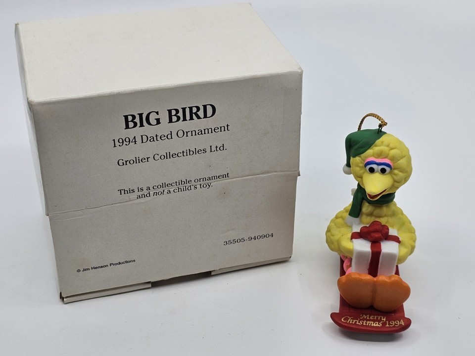 - Grolier 1994 Dated Big Bird on Sled Christmas Holiday Ornament w/ Box