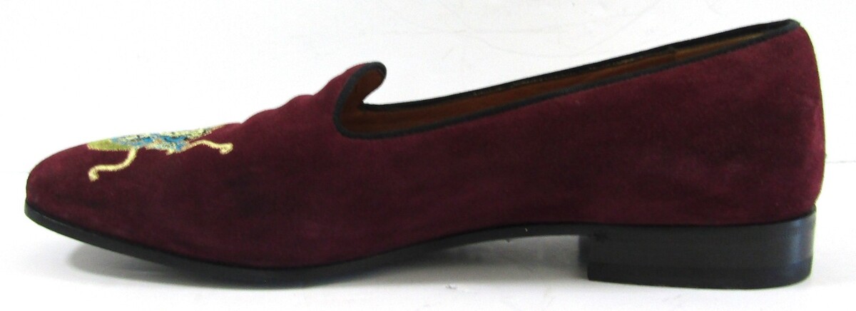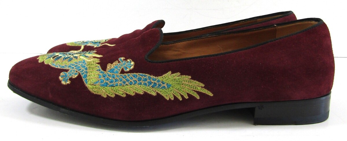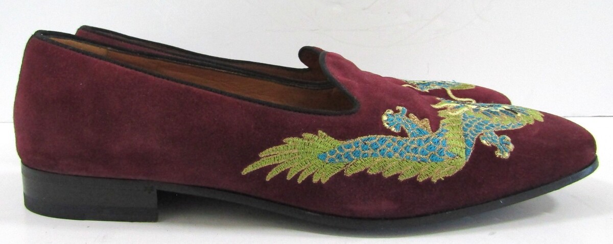 - Gucci Dragon Embroidered Wine Colored Suede Loafers Shoes Size 9