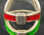 The Gucci Sherryline Crossover 925 Silver Ring in size 20 is a stylish and luxurious jewelry piece from Italy. Featuring a green color and a band style design, this ring is perfect for adding a touch of elegance to any outfit. Made from high-quality silver, this ring is a versatile accessory that can be worn for both casual and formal occasions. It comes in its original box and dust bag, making it a great gift option for those who appreciate fine craftsmanship and designer pieces.