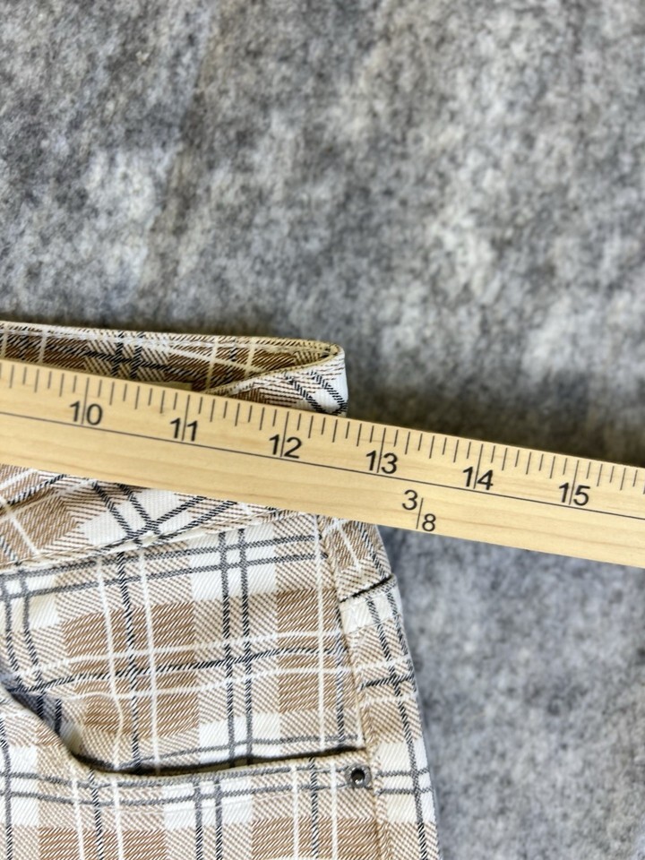 Guess Originals Women's High Rise Straight Pants Size 26 Plaid Tan White Stretch