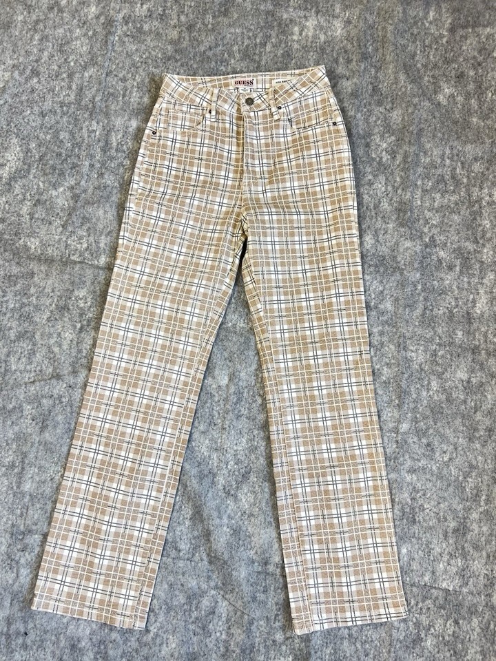 - Guess Originals Women's High Rise Straight Pants Size 26 Plaid Tan White Stretch