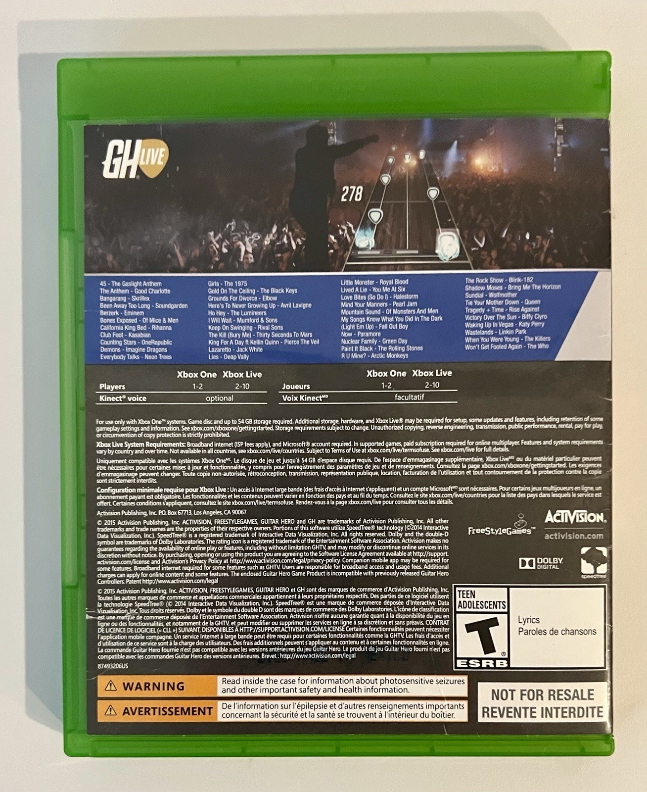 - Guitar Hero Live (Microsoft Xbox One, 2015) Game Only Tested And Working