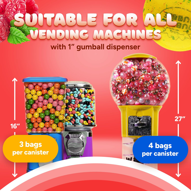 GUMBALL MACHINE REFILL: chewing gumballs come in a convenient 2.4 lb bulk pack (approx 136pcs), making them the perfect choice for anyone looking to refill their gum ball machine. Whether you're a business owner or just looking to add some fun to your home, these gumballs can be vended easily through any gumball vending machine with an appropriate dispensing wheel