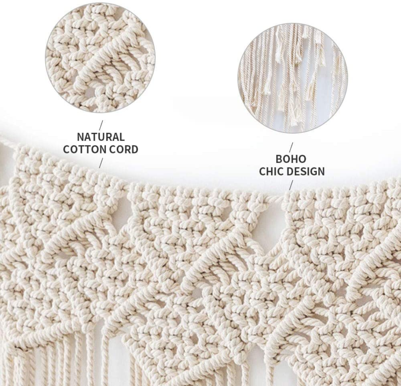 PREMIUM QUALITY boho macrame wall hanging: 100% top notch cotton and 100% yarn threads used to provide a premium quality wall, strong and durable, naturally safe without the funny smells, and the macrame distance between each one can be easily adjusted. This decorative wall hanging reflects the finest craftsmanship in the traditions of Native American artwork.