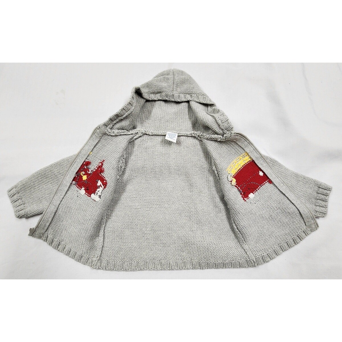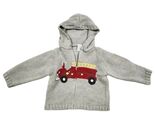 - Gymboree Baby Boy Little Fire Truck Knit Hooded Cardigan Sweater 9-12 Gray VTG