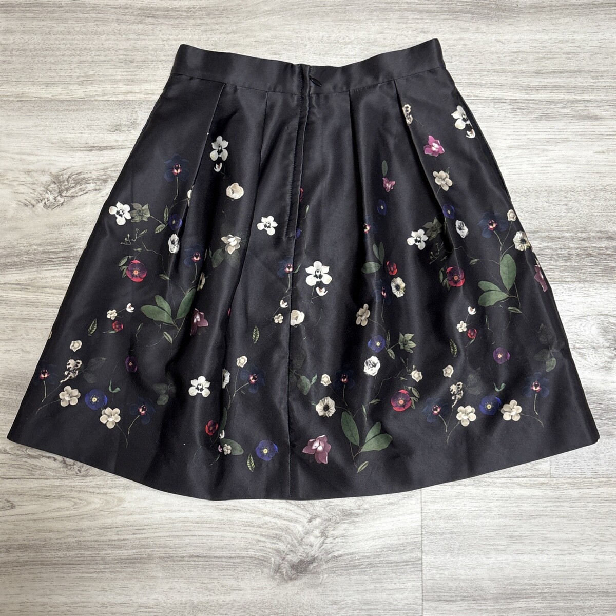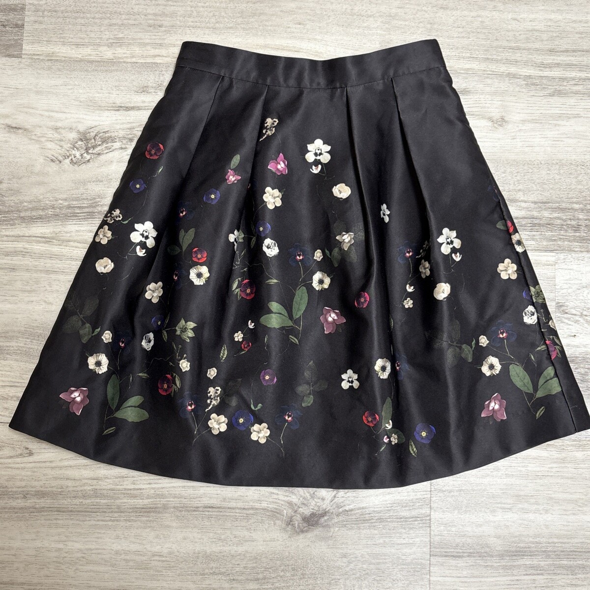 - H&M Flare Skirt Womens Size 6 Black Wild Flowers Pleated Mini High Waist Pockets