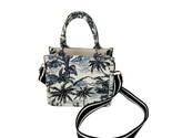 H&M Mini Tote Jacquard Tote Palm Tree Leaf Tropical Bag Crossbody Strap Blue EUC