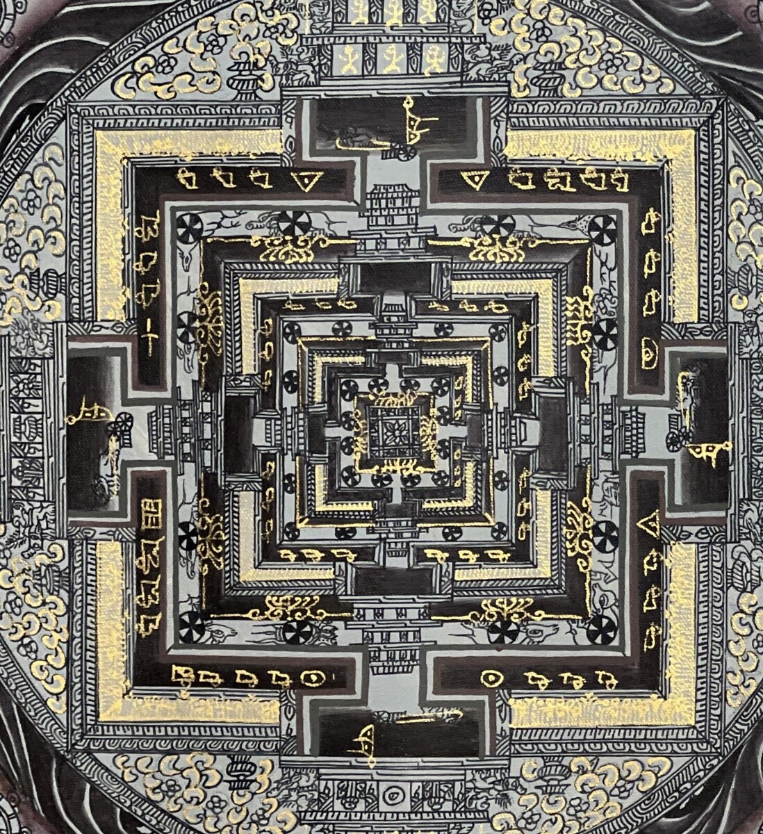 - HAND-PAINTED, KALACHAKRA MANDALA, TIBETAN, THANGKA, THANKA, ORIGINAL PAINTING