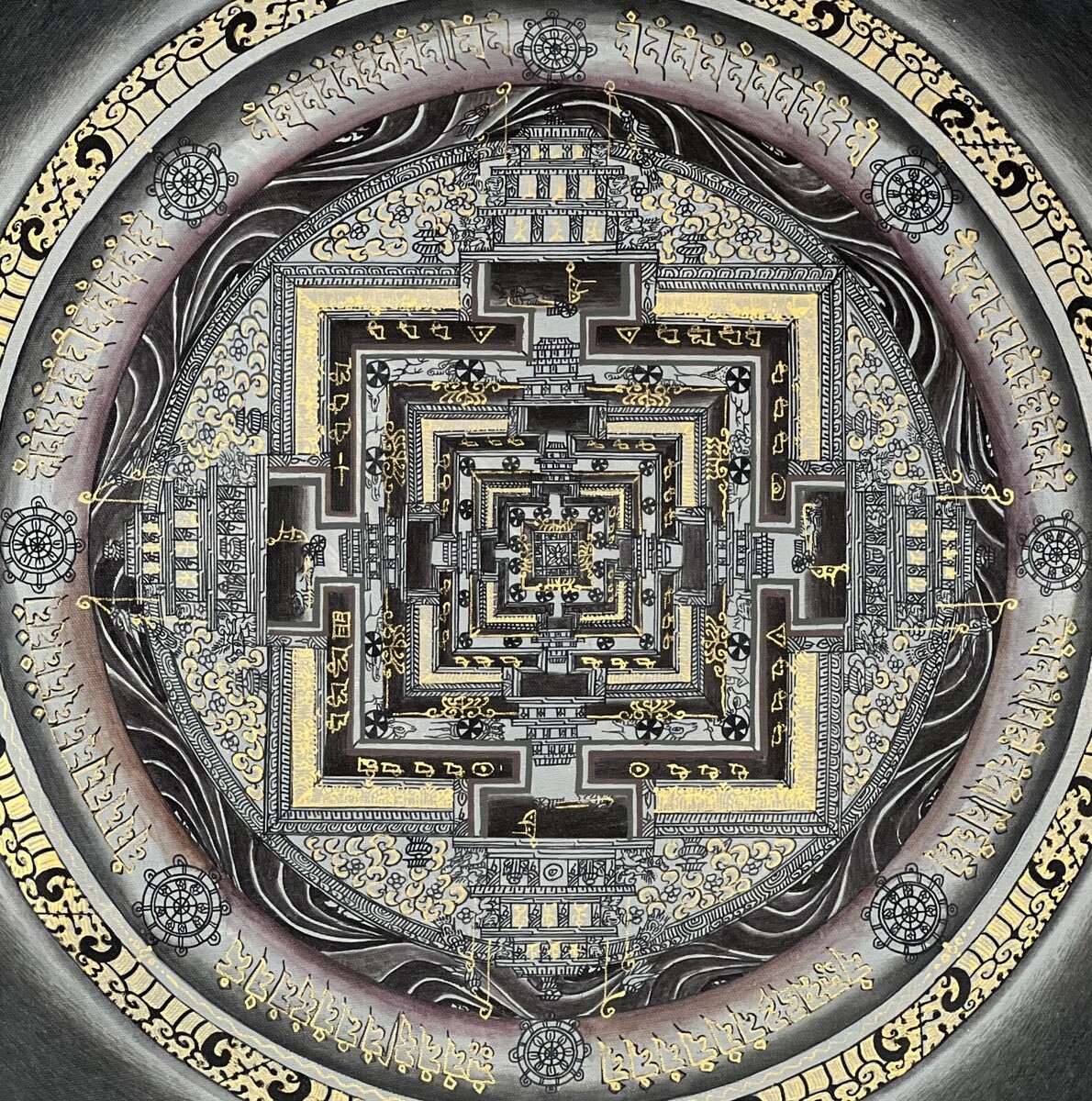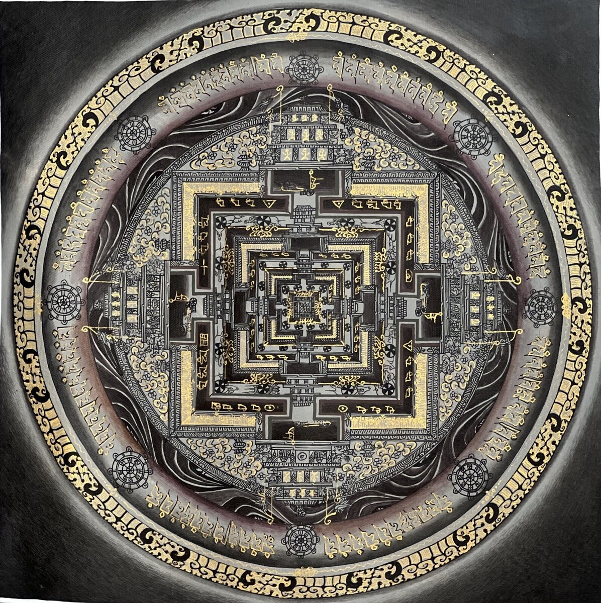 HAND-PAINTED KALACHAKRA MANDALA -THE WHEEL OF LIFE CIRCLE ORIGINAL- TIBETAN THANGKA PAINTING, BUDDHIST ART