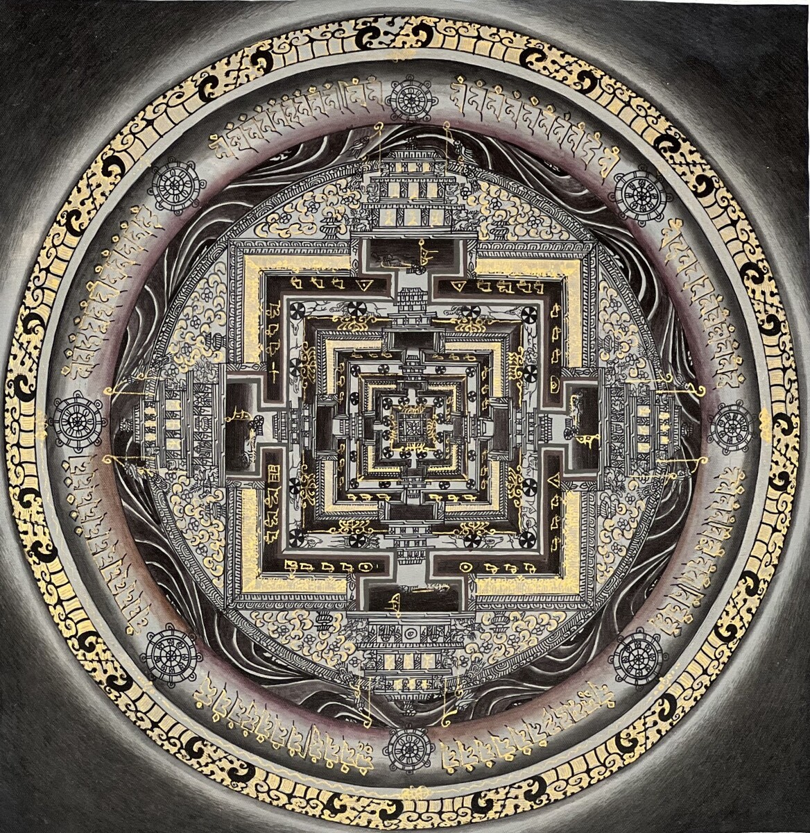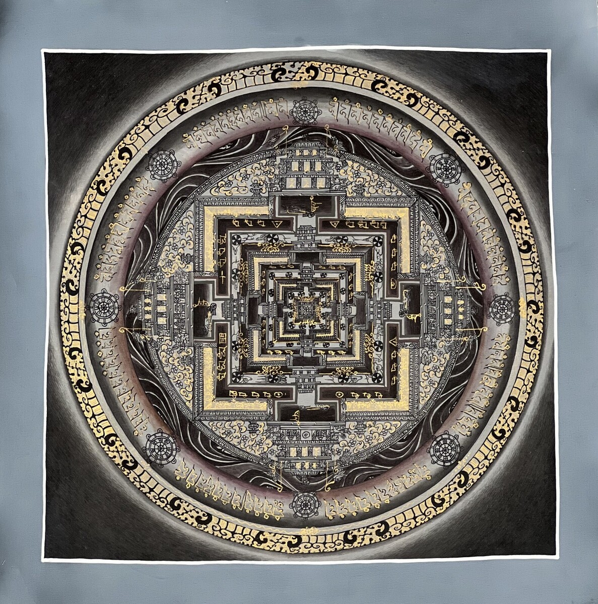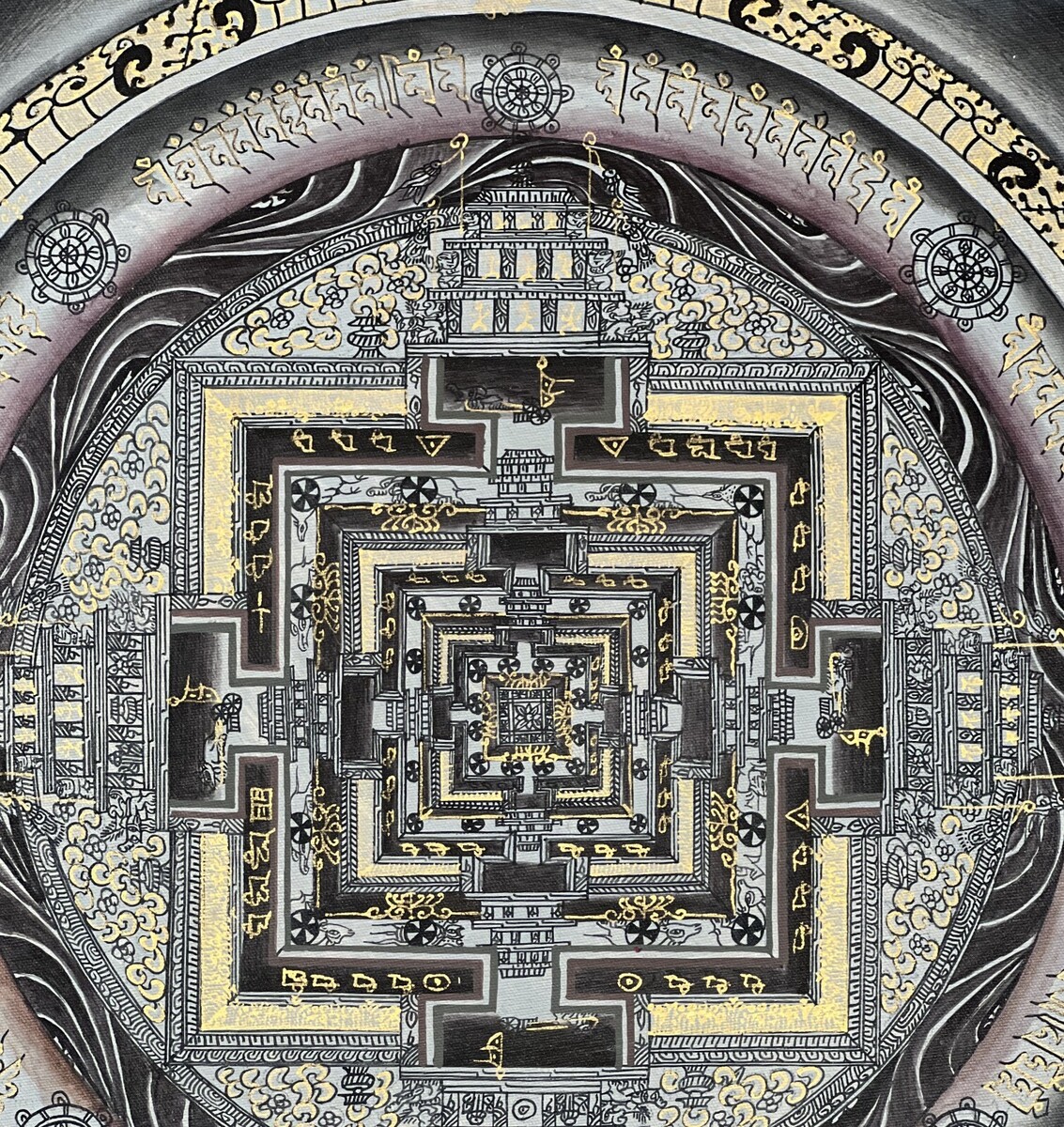 HAND-PAINTED, KALACHAKRA MANDALA, TIBETAN, THANGKA, THANKA, ORIGINAL PAINTING