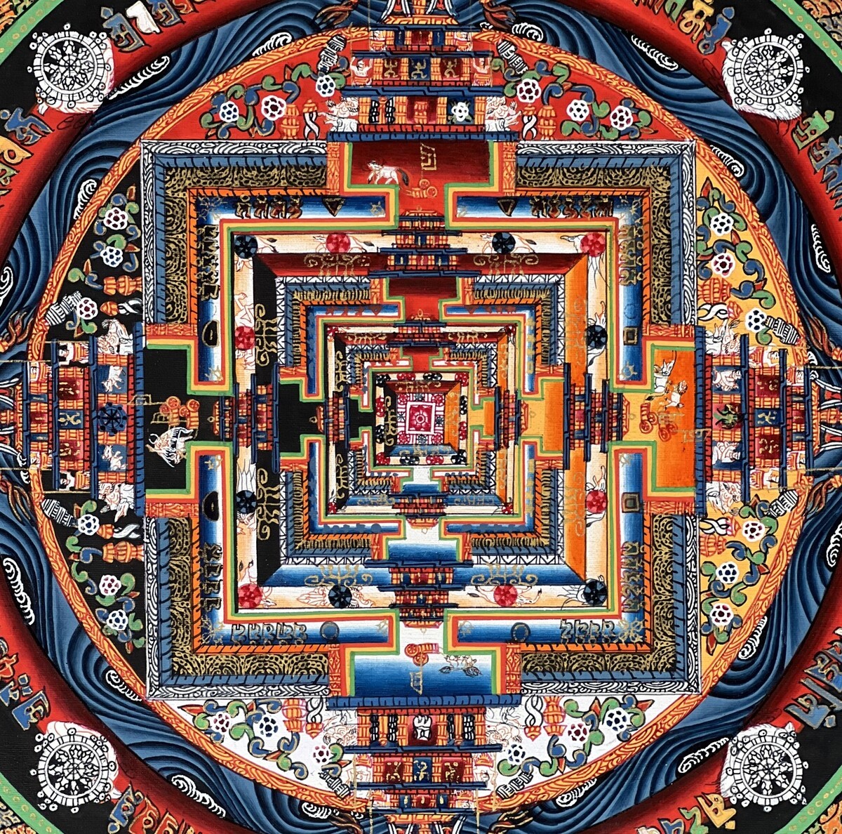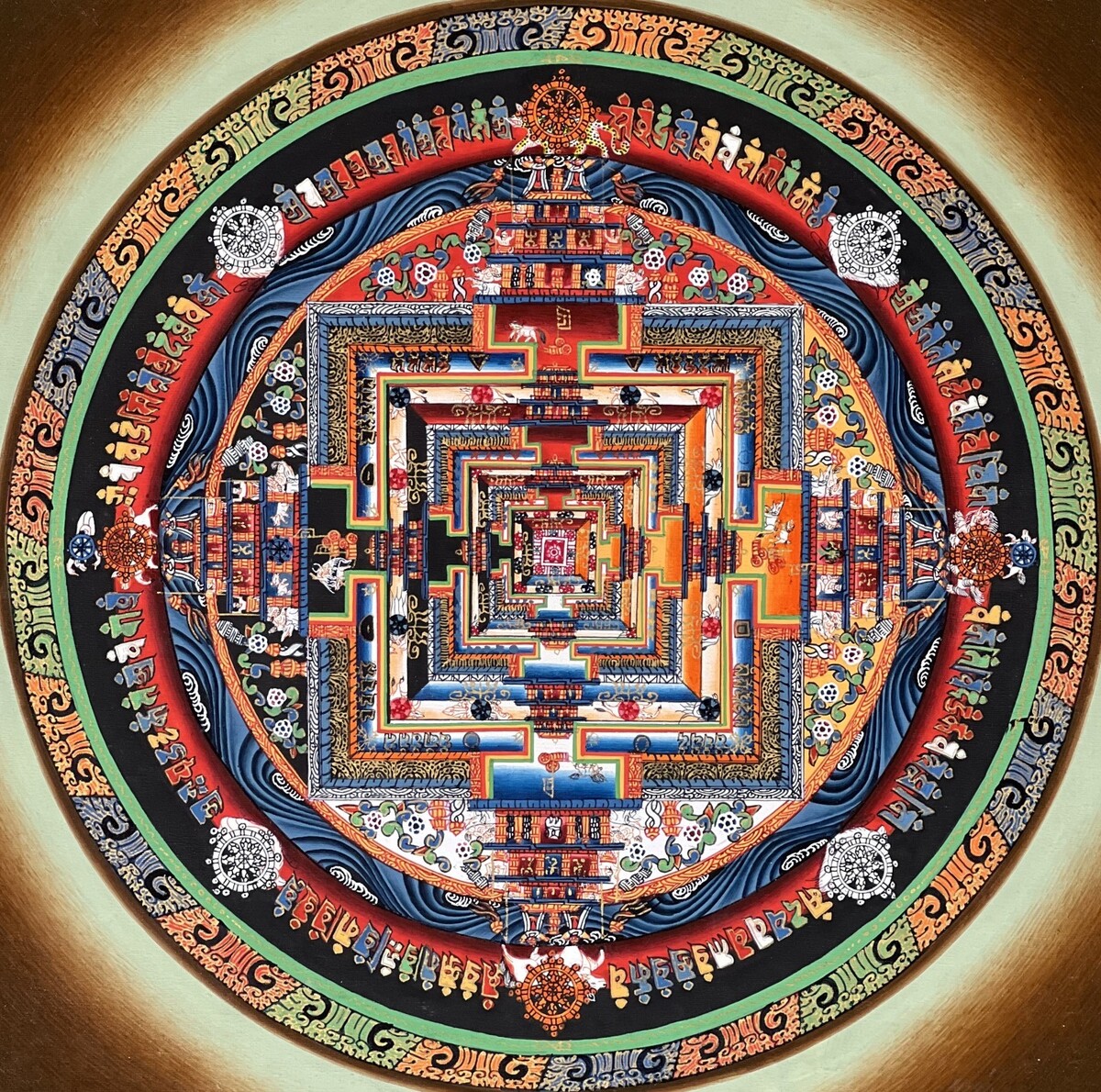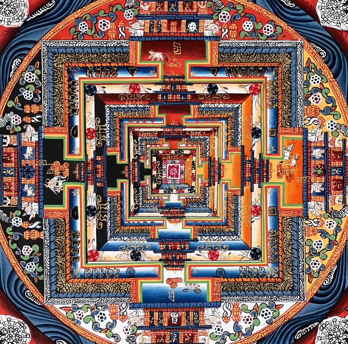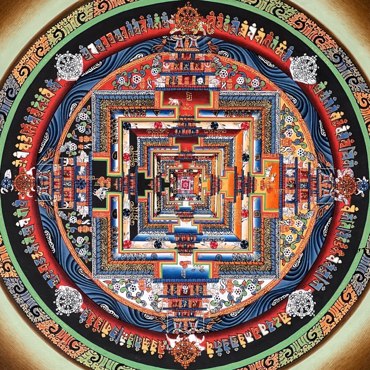 - HAND-PAINTED KALACHAKRA MANDALA – WHEEL OF LIFE TIBETAN THANGKA PAINTING
