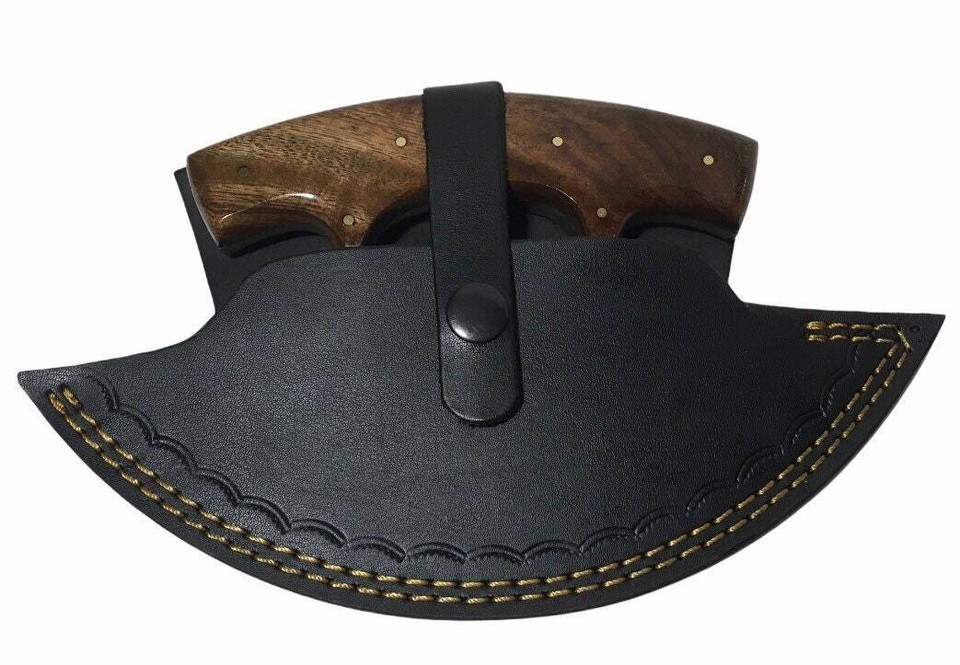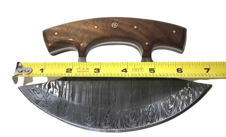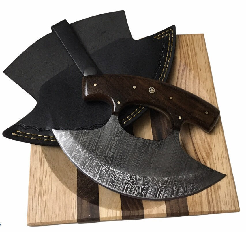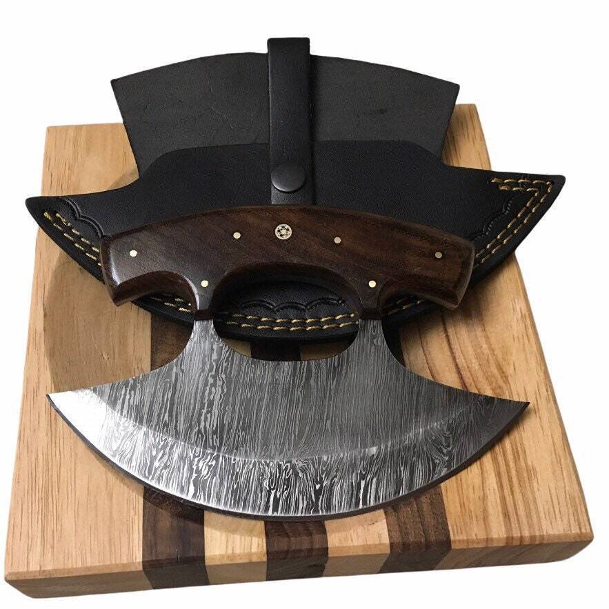 - HEARTY Large Custom Wood Handle Ulu Knife 7" Damascus Chopping Bowl Sheath