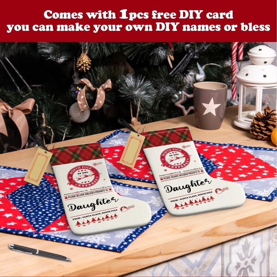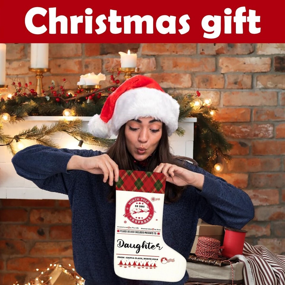 HEWBE Burlap Christmas Stocking Rustic Hanging Xmas Decoration Daughter Gift