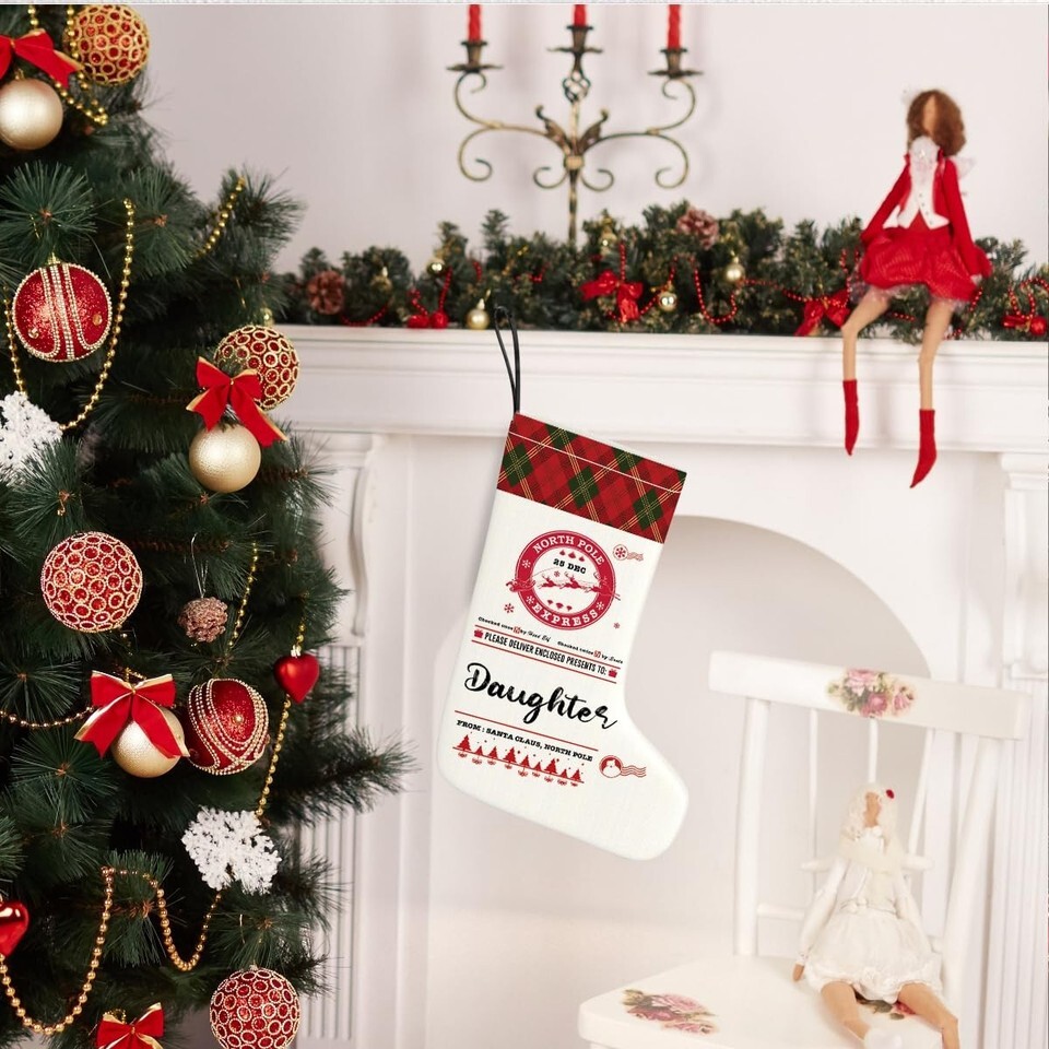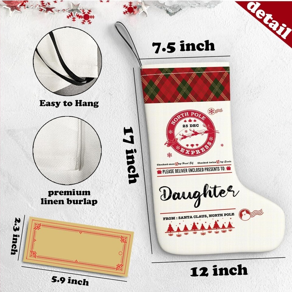 - HEWBE Burlap Christmas Stocking Rustic Hanging Xmas Decoration Daughter Gift