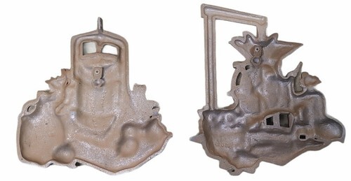 - HOMCO 1978 Cast Metal Wall Plaques #1270 BX Set of 2 Apple Press & Corn Sheller