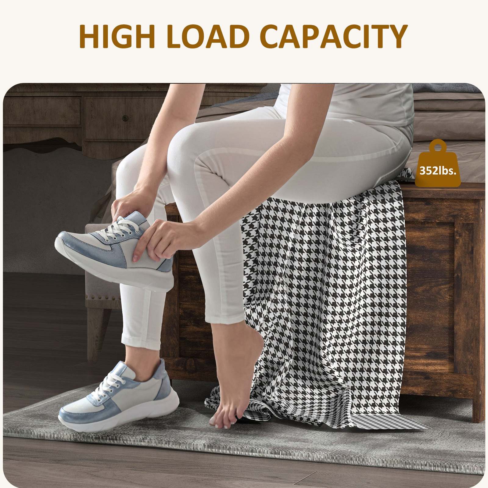 Impressive Load Capacity: The top of our blanket chest can support up to 264 lbs., allowing you to sit comfortably while changing shoes, and the compartment has a maximum weight capacity of 88 lbs., enabling you to store many items with peace of mind.