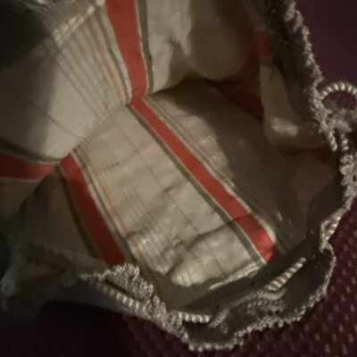 Rare crocheted top with beaded rope handle ? drawstring closure.