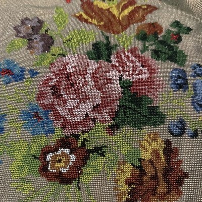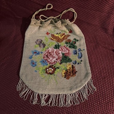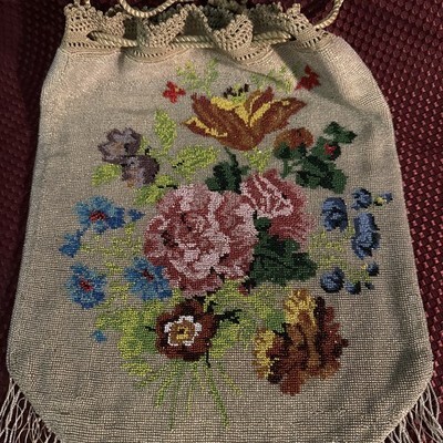 Antique beaded reticule, giant floral handbag, fringe miser purse ? one-of-a-kind!