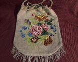 - HUGE 1917 Dated Beaded Flapper Purse Floral Fringe Crocheted Top Excellent LOOK