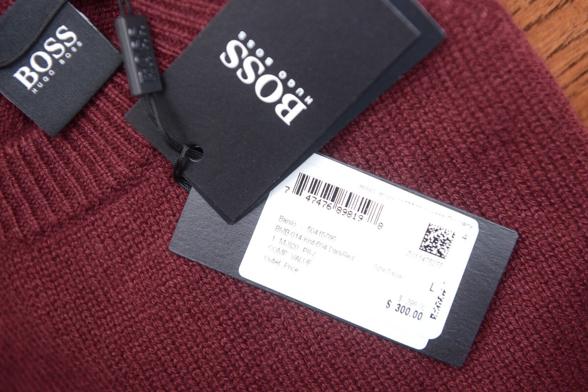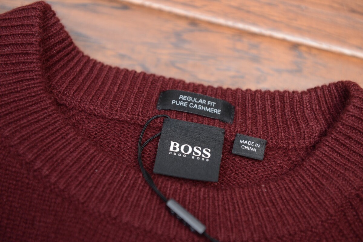 HUGO BOSS Herren Banilo Regular Fit Dunkelrot 100% Kaschmir Strickpullover L