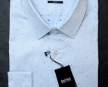 - HUGO BOSS Herren Isko Slim Fit Pastellblau Gepunktet Baumwollkleid Hemd 43 17