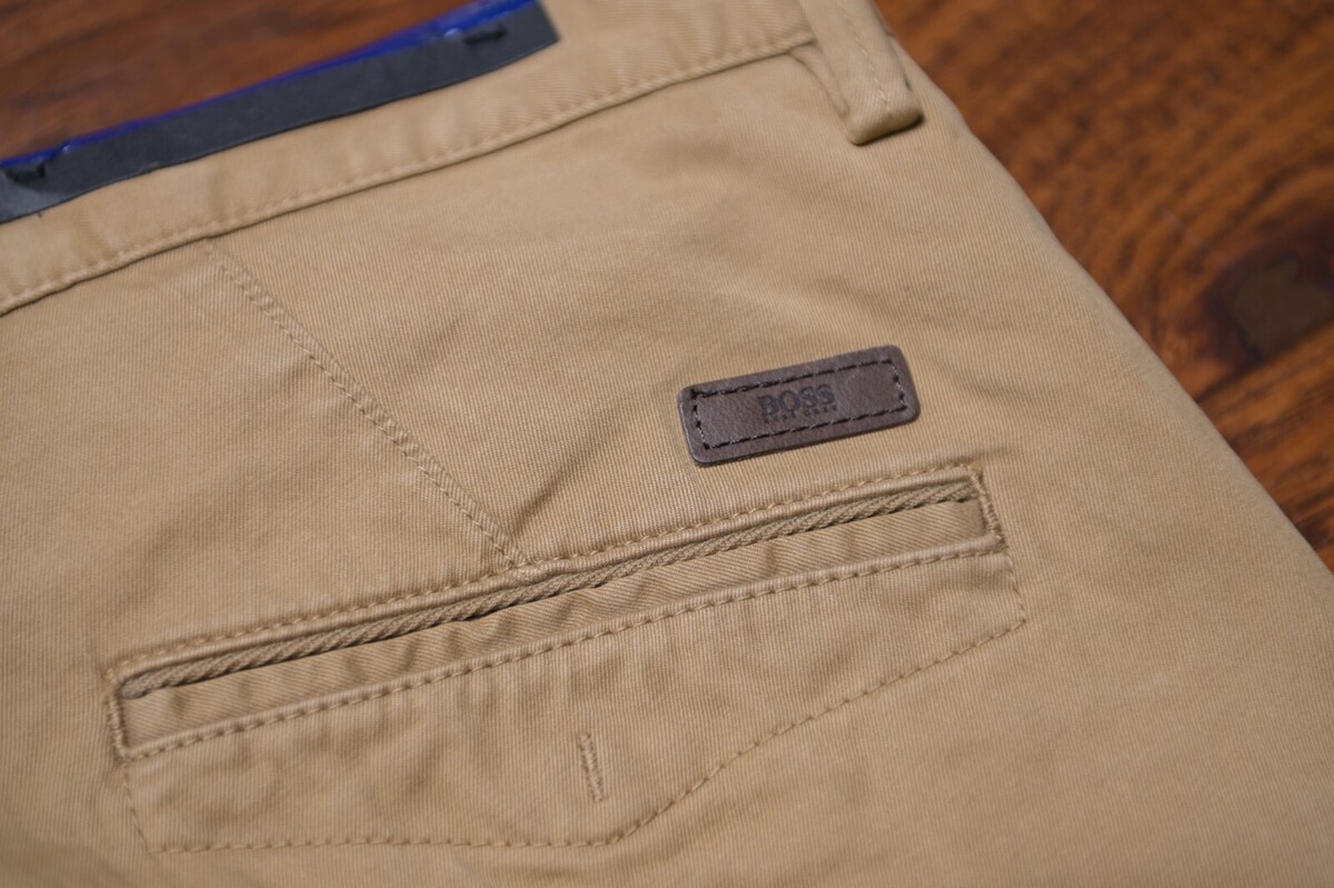 - HUGO BOSS Hombre Arroz Ajustado Algodón Elástico Med Beige Chinos 40R Eu 56