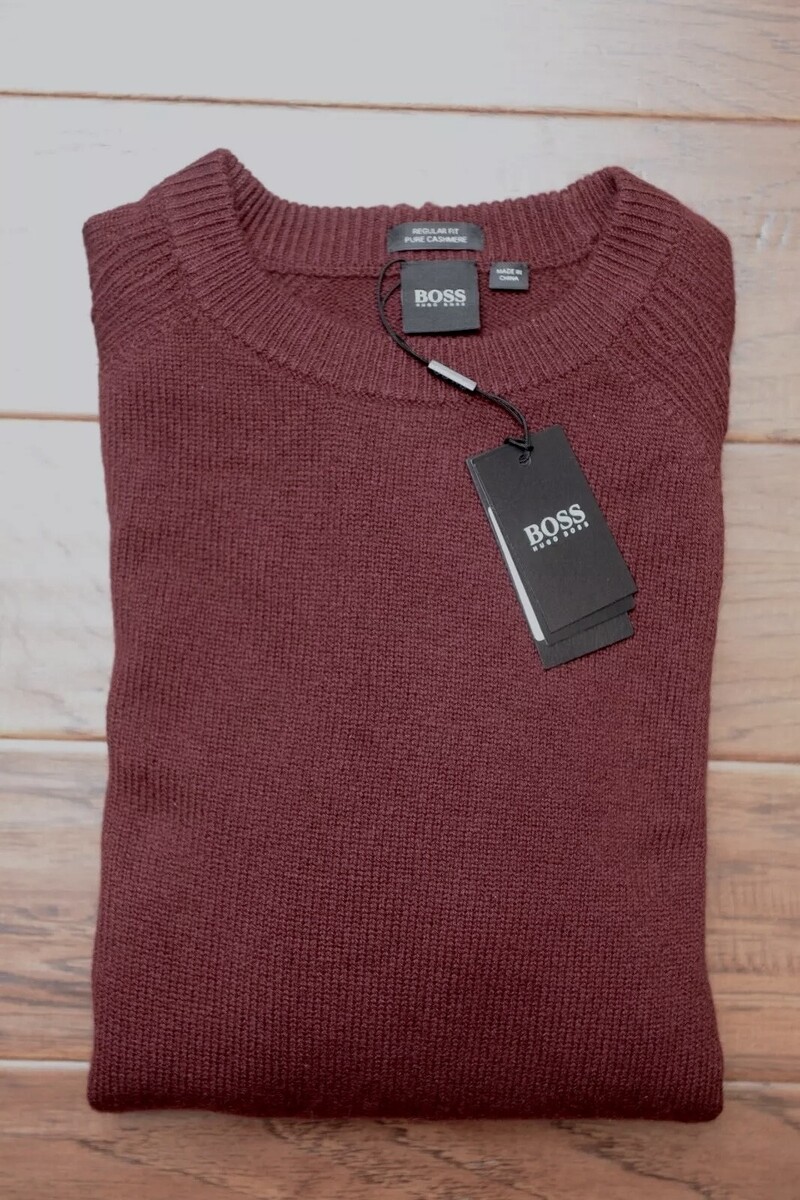 - HUGO BOSS Homme Banilo Coupe Standard Rouge Foncé 100% Cachemire Tricot Pull L