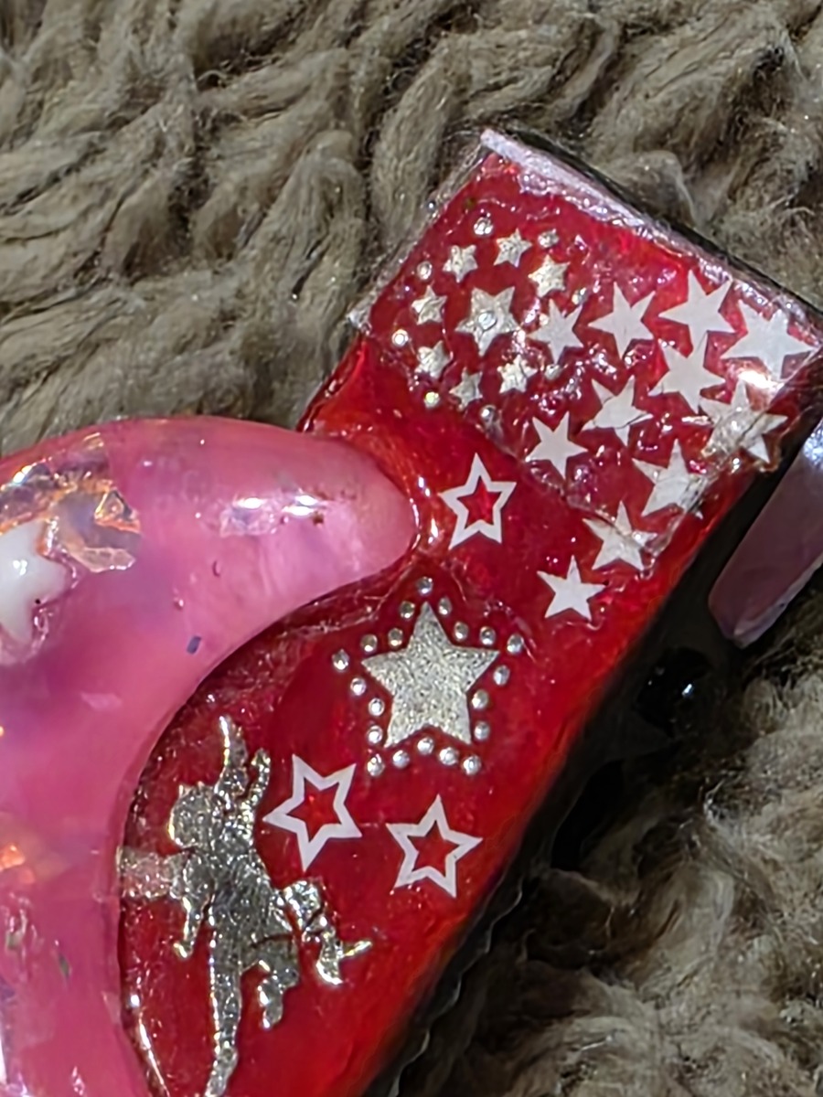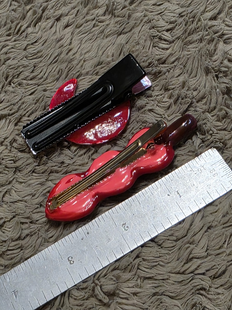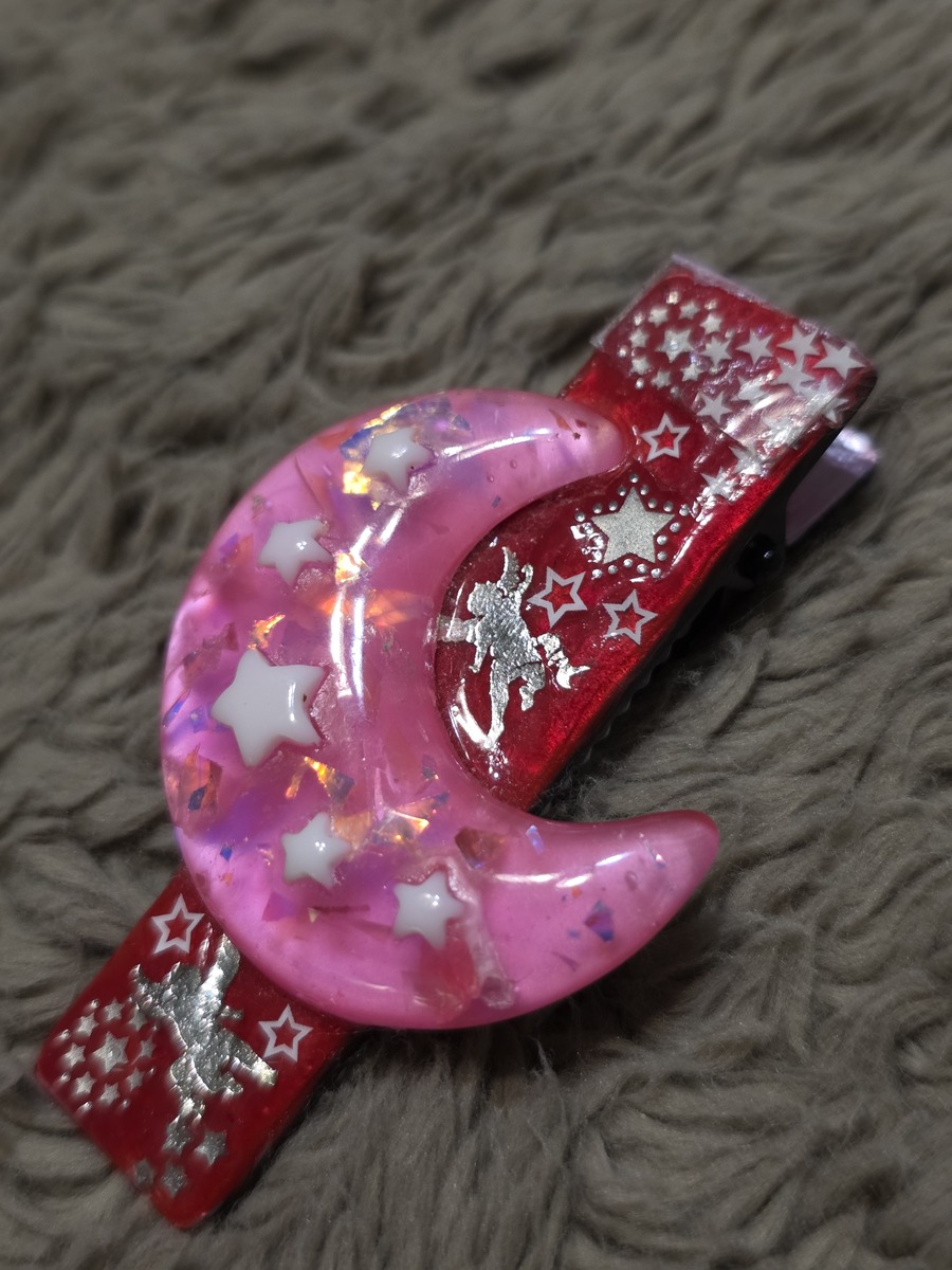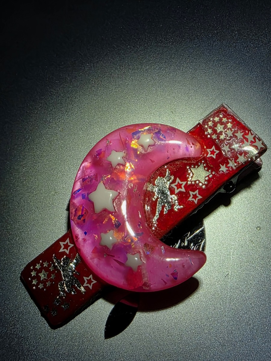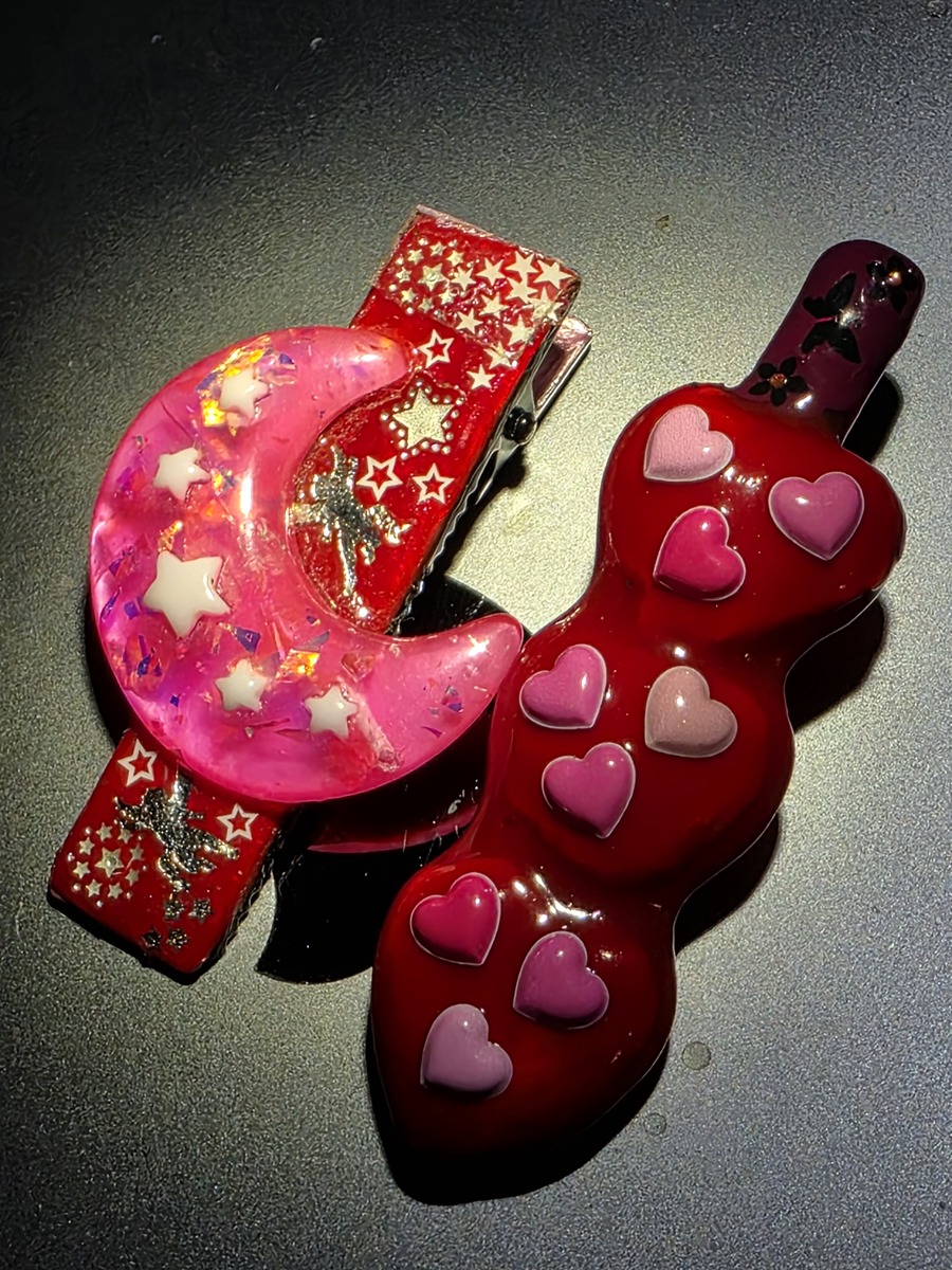 out ending the month of oct 025......is a pair of Darling Hairclaws......a MUSTHAV for young girls going Chic.............Design originality,and extreme Q construction.........Hallmarks of this studio.....are again offered in these Love/affection style hairclaws.........for optium light/refraction.....coated X 3 In Liquid Glass........item with fairy decor has gorillatape grip/protection..........feel free to scroll.....as 100d's of WOWA!!..... beautiful items are available, THANKS! welldressedattic.