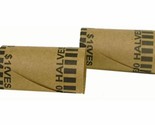 Half Dollar Crimped end preformed coin wrappers. THIS IS OUR MOST POPULAR ITEM! The crimp at one end keeps them open and ready to fill, by hand or machine. We have improved our machines so they provide an extra tight crimp that withstands rough handling yet provides an inside diameter guaranteed to hold the proper coin. Kraft finish with approved ABA color coded, candy striped edges and denominations.