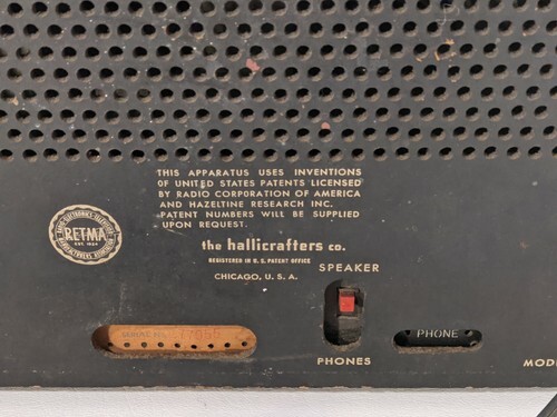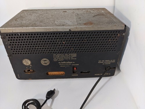 In vendita c'e un ricevitore Hallicrafters S95 Civic Patrol a onde corte usato. L'unita si accende e si sente un ronzio ma non sono stati eseguiti ulteriori test. Contiene lievi segni di usura dovuti all'uso straordinario. Viene venduto così com'e solo per la riparazione di parti e un restauro. Si prega di osservare le foto e se avete domande non esitate a chiedere. Grazie per aver guardato