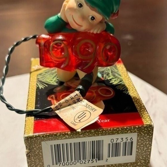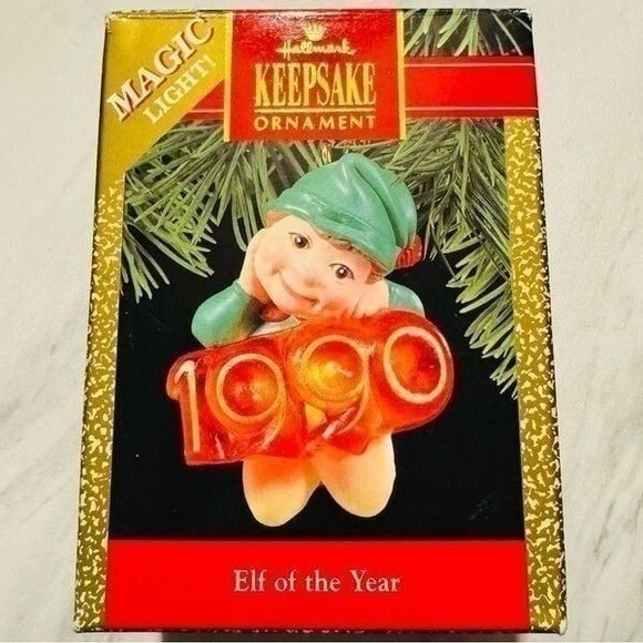- Hallmark Keepsake 1990 Elf of the Year Light Up Ornament, Vintage, Christmas NIB