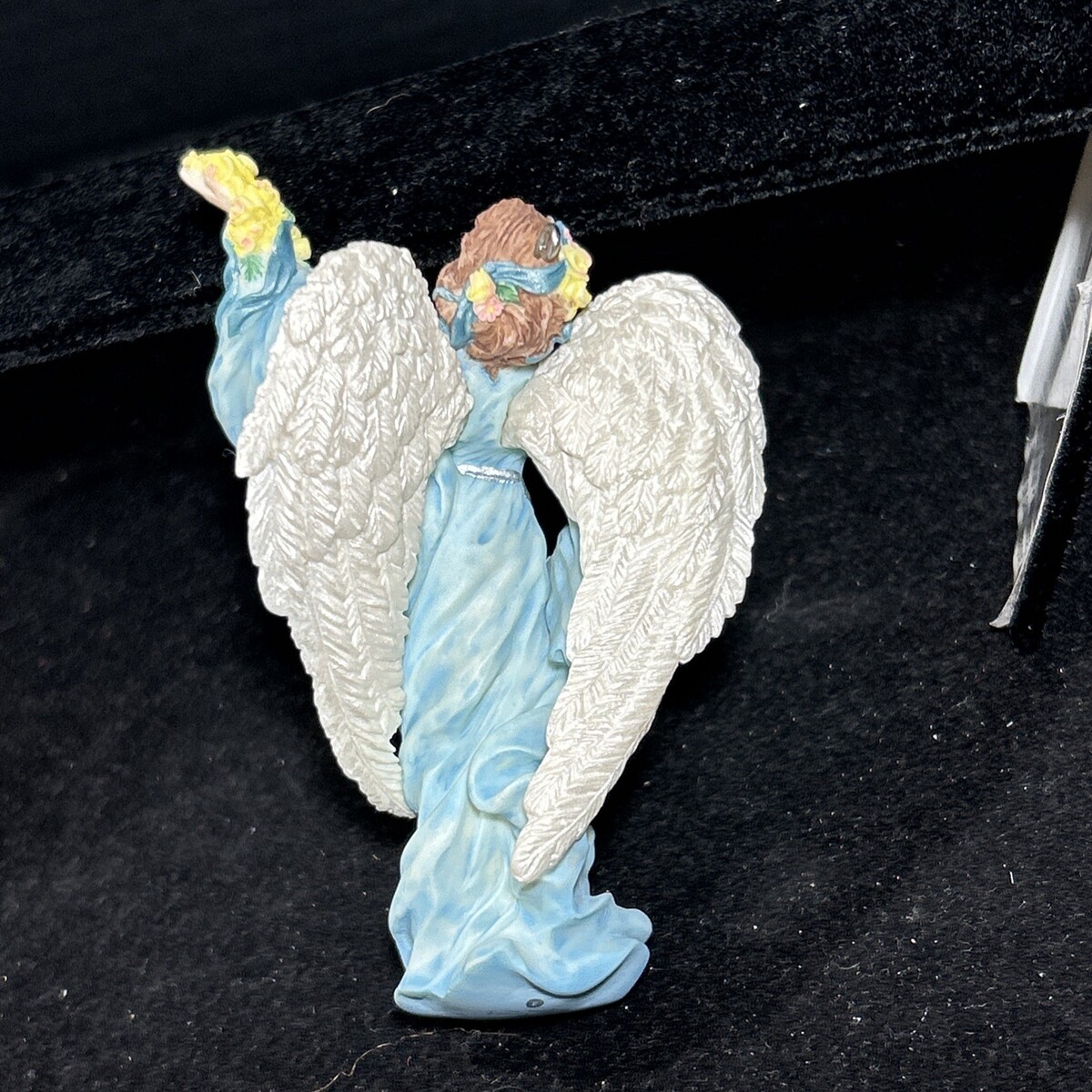 The 1998 Hallmark Ornament: Joyful Angels, (#3 in the series) QEO8386, is a beautifully designed collectible featuring an angel character in a multi-colored painted finish. This ornament is part of the Joyful Angels Series collection by designer Joyce Lyle, perfect for Christmas celebrations. It comes in its original box, making it a joyful addition to any holiday decor.