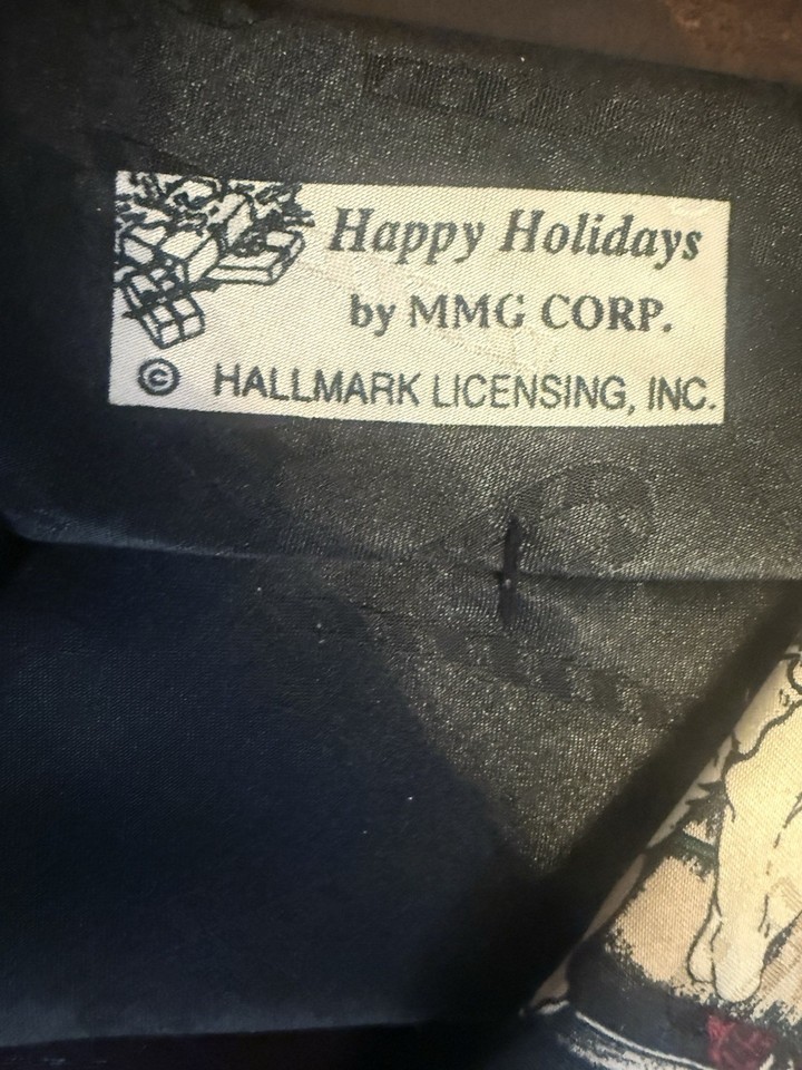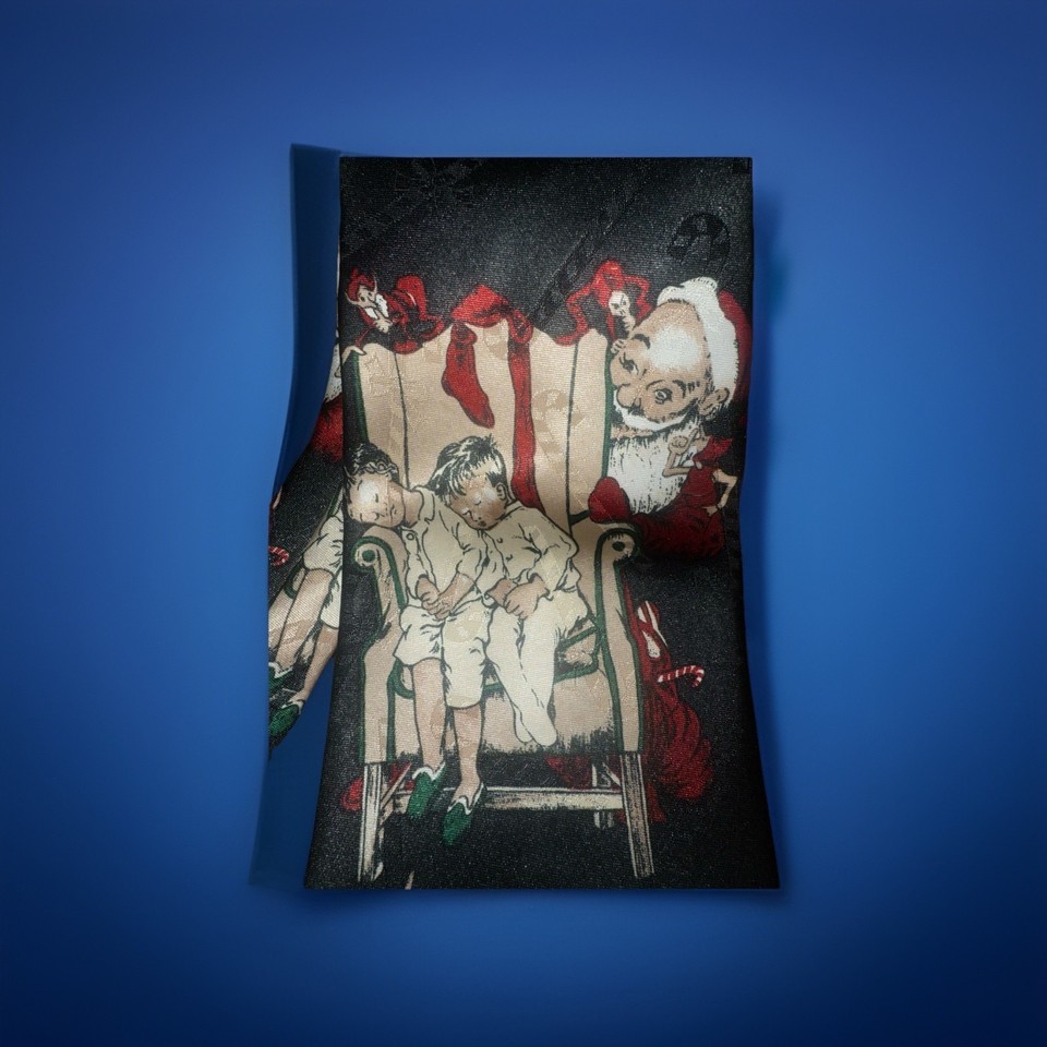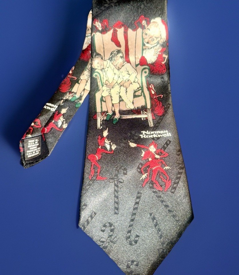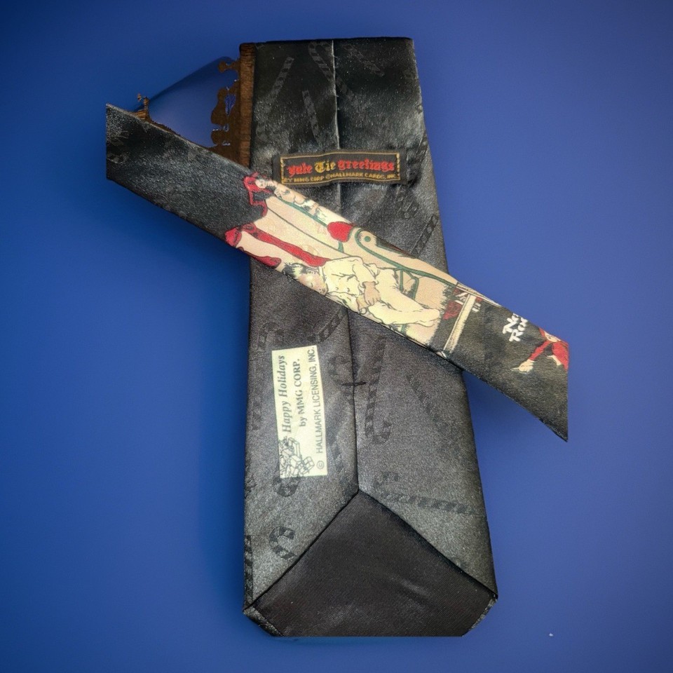 - Hallmark Yule Christmas Neck Tie Norman Rockwell Santa- candy canes- Red & Black