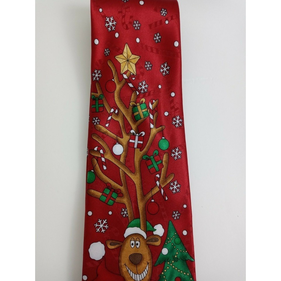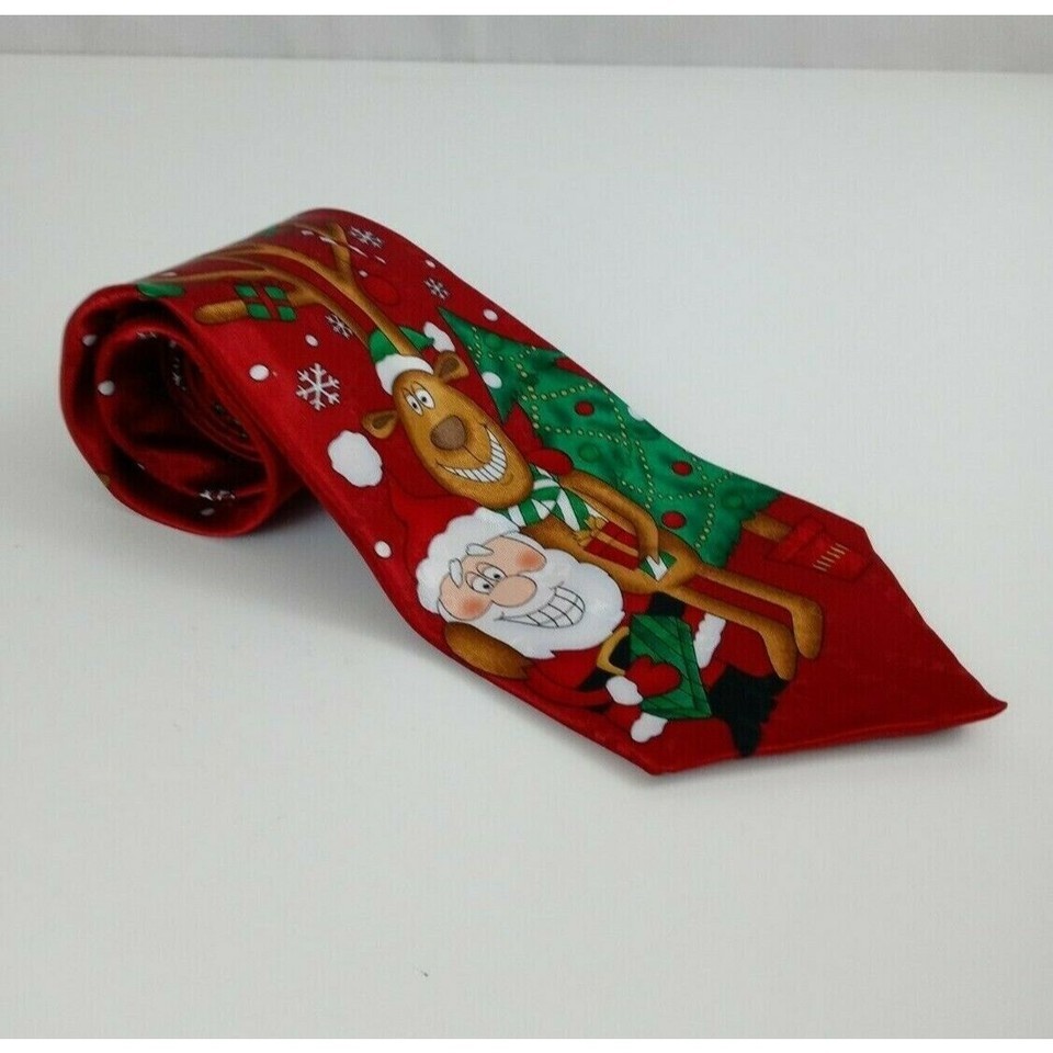 - Hallmark Yule Tie Greetings Red Tie With Santa Claus & Reindeer Design