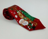 This is for a used Hallmark Yule Tie Greetings Red Tie With Santa Claus Reindeer Design.