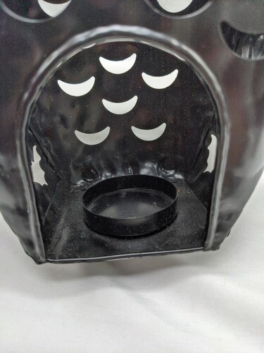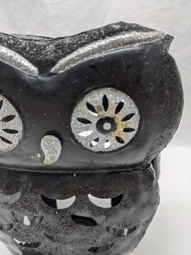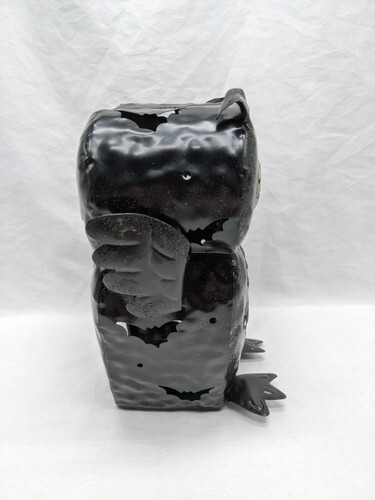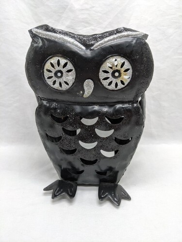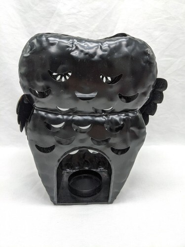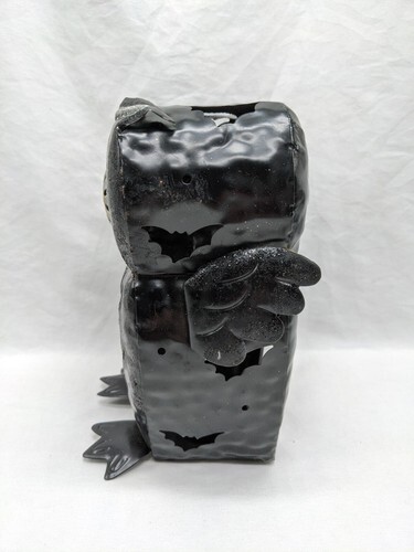 - Halloween Black And Silver Owl Tealight Candle Holder Decor 8"