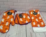 - Halloween Ghost Kitchen 4pc Set - Towel, Pot Holders, Oven Mitt Orange Hey Boo