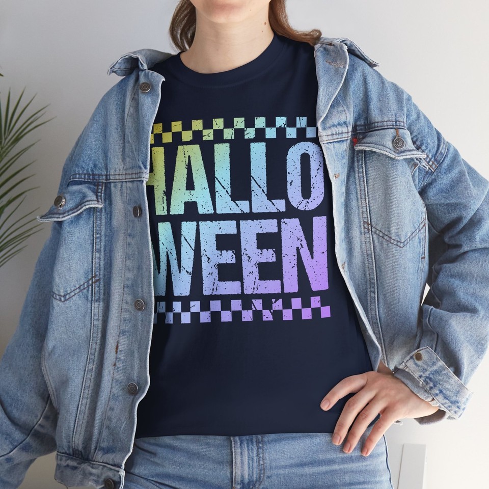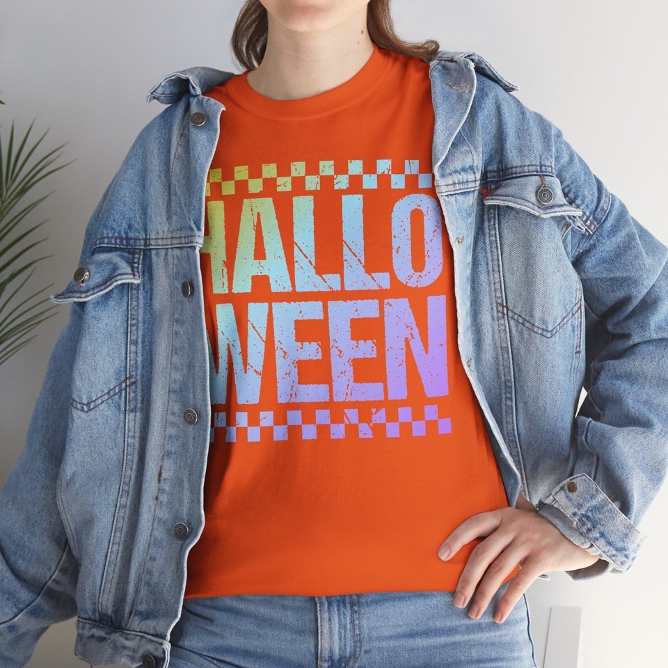 This unisex heavy cotton tee brings a vibrant touch to your fall wardrobe with its eye-catching Halloween design. Perfect for casual outings or cozy nights in, the shirt exudes a fun and festive vibe that celebrates the spooky season. It's a great choice for anyone looking to express their love for Halloween, making it ideal for parties, trick-or-treating, or simply lounging at home. Whether you're dressing up or keeping it casual, this tee ensures comfort and style. It?s also a fantastic gift for friends and family who enjoy the holiday spirit!