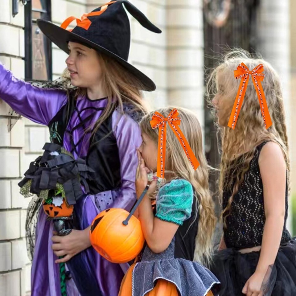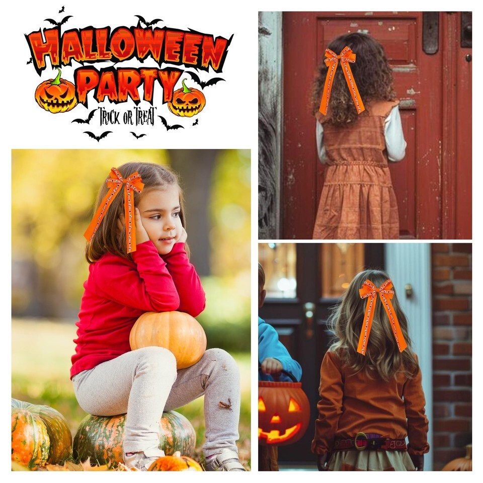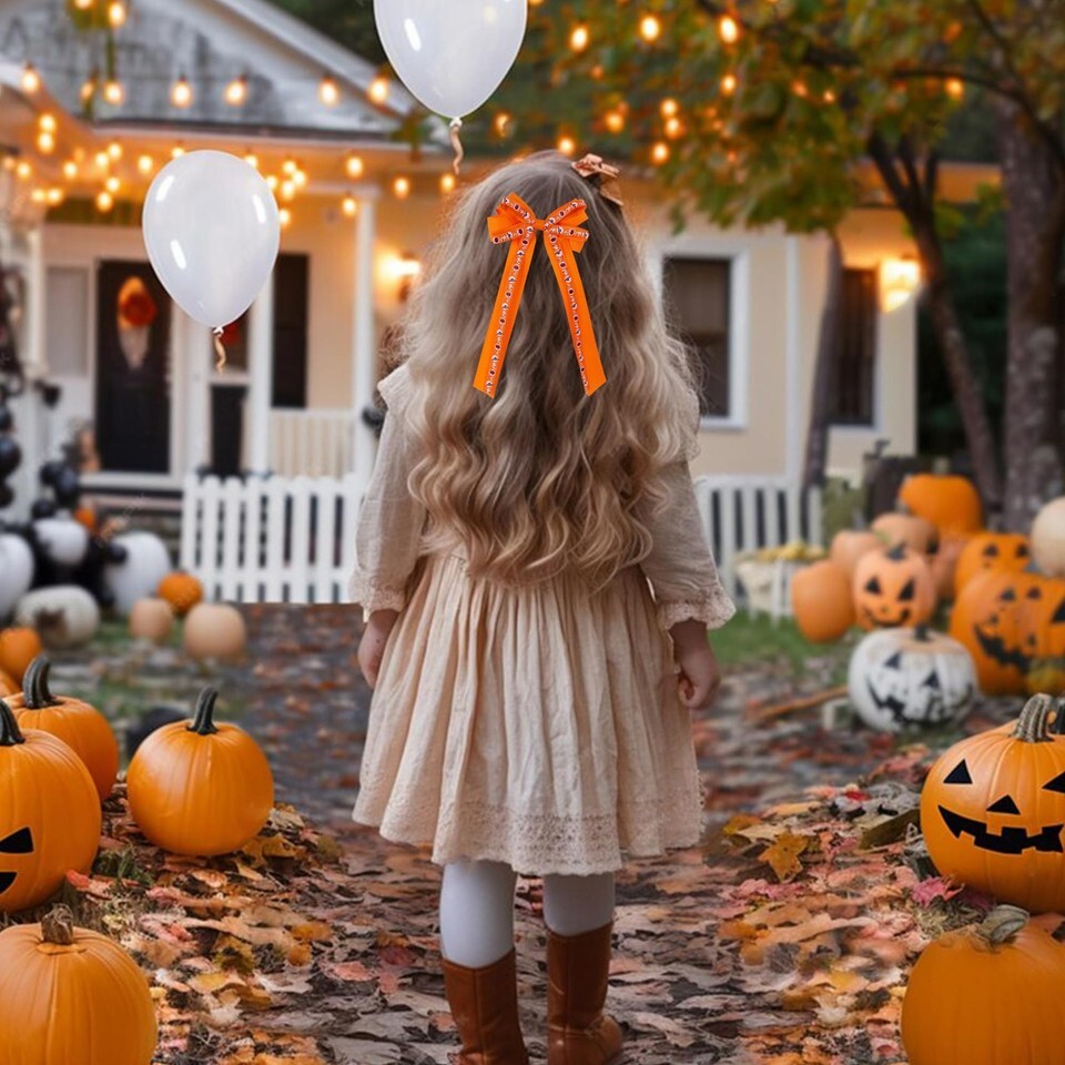 - Halloween Hair Bows Orange Holiday Print Ribbon Clip for Girls Women