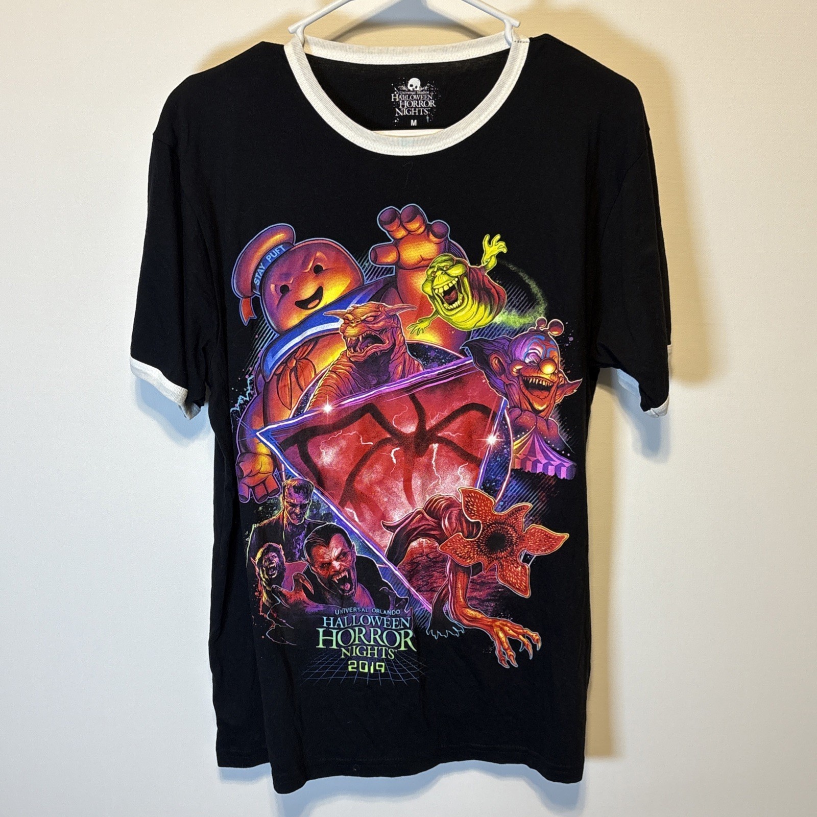 - Halloween Horror Nights 2019 T-Shirt Universal Studios Full Print Black Sz M