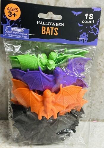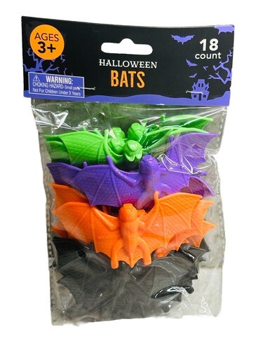 - Halloween Pack 18Ct Bats Purple/Green/Black/Orange Plastic 3+